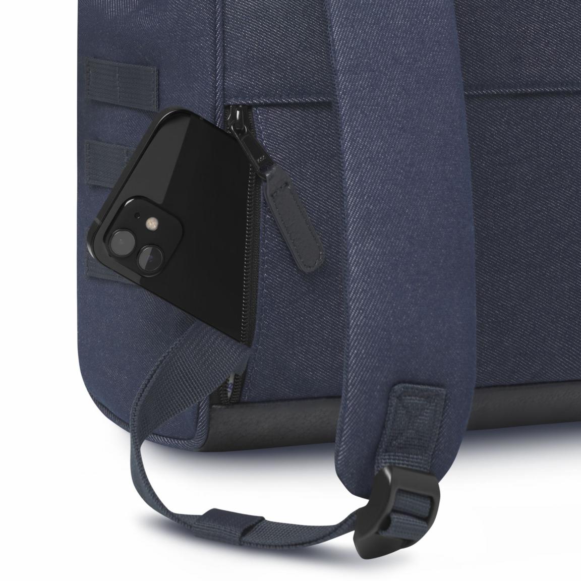 Gefertigt ist der moderne Rucksack im Design Namur aus dunkelblauem Denim Stoff (Dark Blue Navy). Details aus dunkelblauem Kunstleder sorgen für einen gewissen Wow-Effekt.