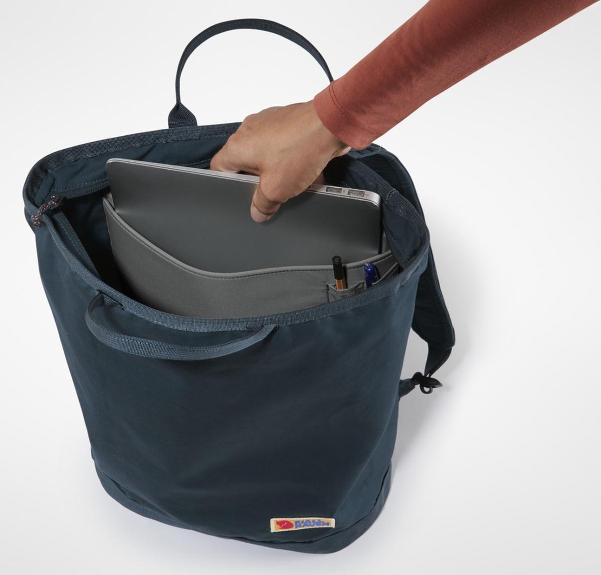 Die Rucksacktasche Vardag Totepack von Fjällräven ist ein echtes Multitalent. Die Henkeltasche aus strapazierfähigem G-1000® HeavyDuty Eco Gewebe in der Farbe Black (schwarz) kann nämlich sowohl als Kurzgrifftasche als auch als Rucksack getragen werden.