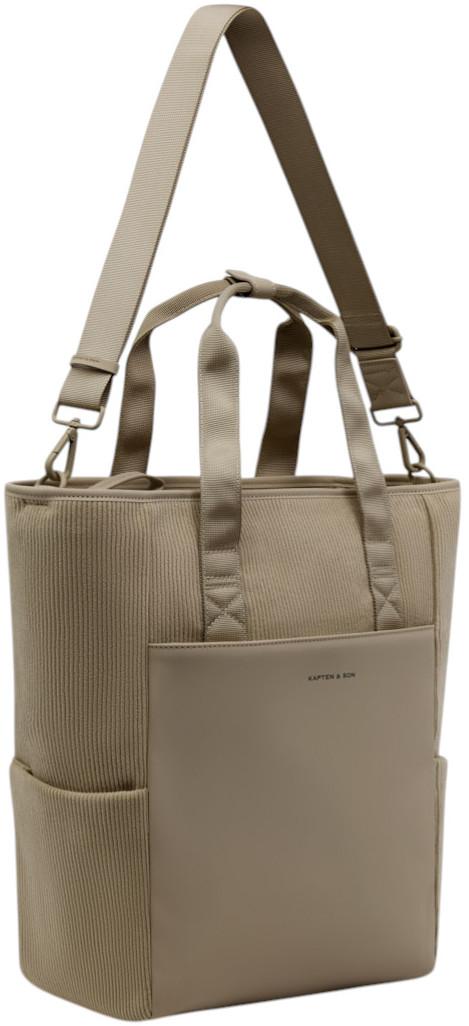 Auf der Vorderseite befindst sich inklusive Taschenboden ein gummierter Einsatz mit dezentem Kapten & Son Logo. Dieser verleiht der 2in1 Tasche einen hochwertigen Akzent. Der weiche Rippcord und das gummierte Material erzeugen einen ansprechenden Materialmix.
