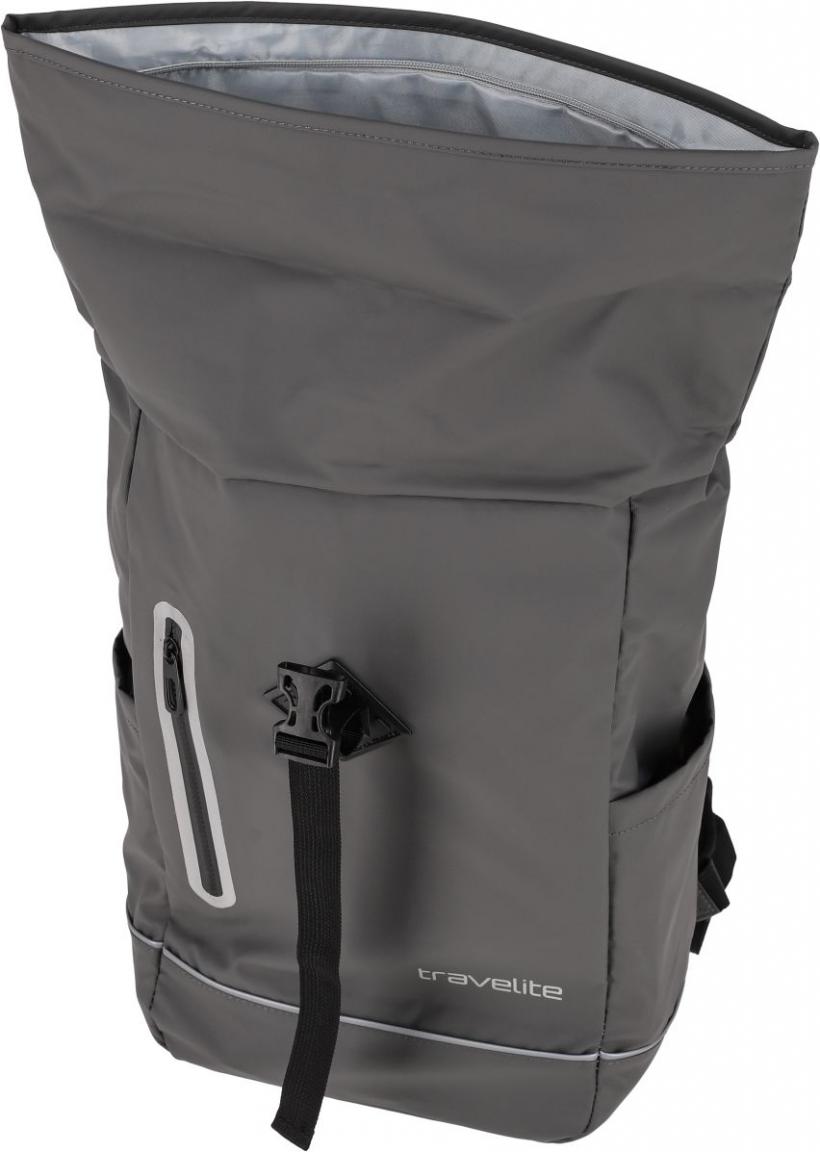 Der ideale Begleiter für alle Outdoor-Aktivitäten ist dieser Roll-Up Freizeitrucksack aus der Serie Basics von Travelite. Gefertigt aus wasserabweisendem Planenmaterial in Anthrazit (dunkelgrau) aus beschichtetem Polyester schützt der Outdoorrucksack den Inhalt vor Wind, Regen und Schmutz. Das ungewöhnliche Design macht den Backpack zum echten Blickfang.
