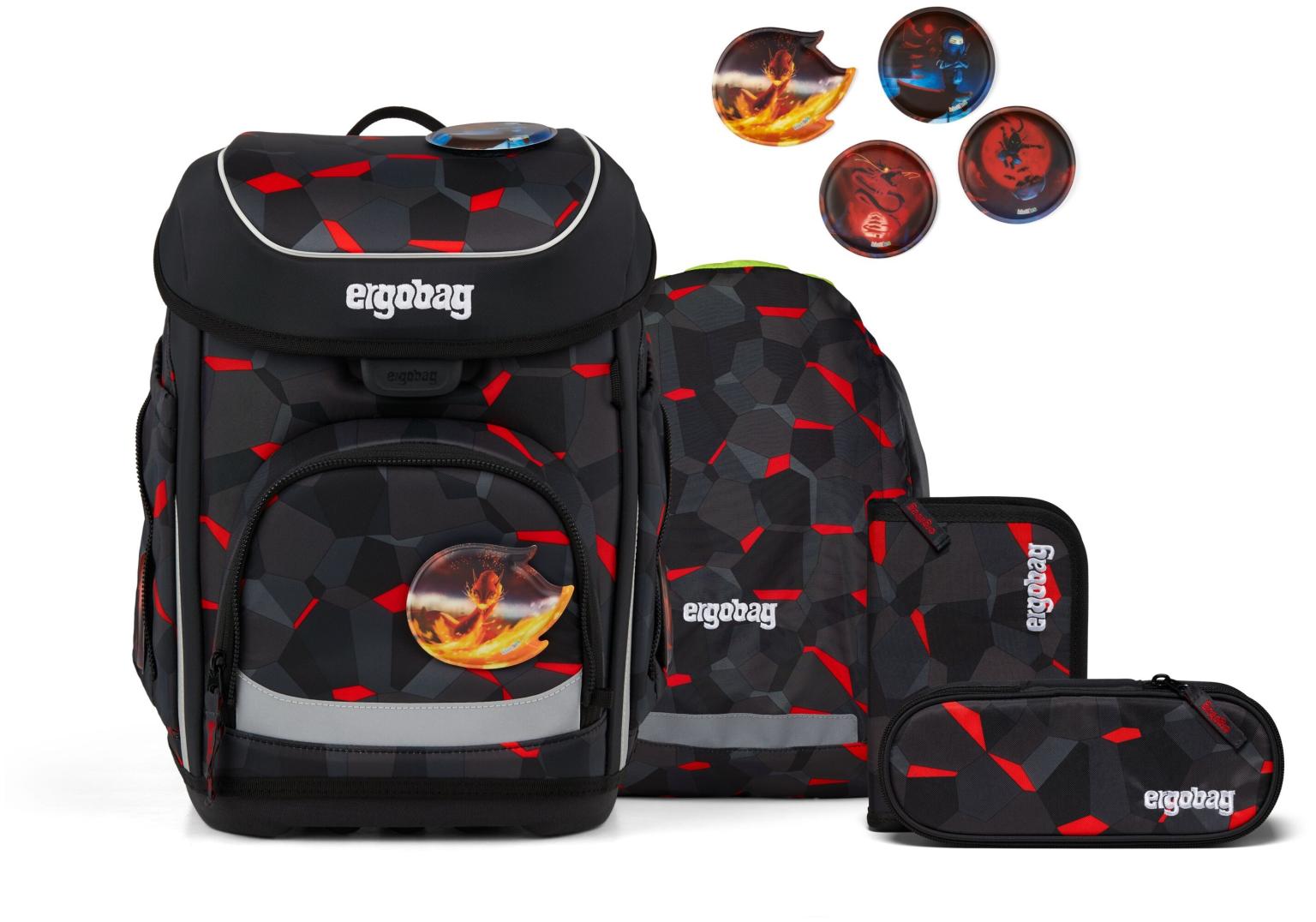 Mit dem kindgerechten Design des 5-teiligen Grundschulsets Cubo TaekBärdo von Ergobag macht sogar die Schule Spaß. Nicht nur die Farbgebung der Schultasche in Schwarz und Rot mit auffälligem Print, auch die vier Kletties mit passenden Ninja- und Drachen-Motiven sorgen sofort für gute Laune. Komplettiert wird das Rucksackset mit befüllter Federmappe, Schüttelpennal und Sportbeutel.