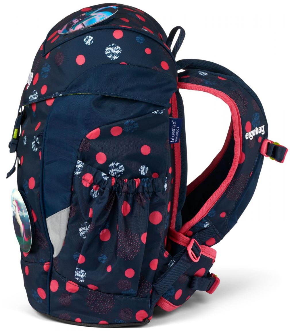 Haltungsschäden bereits im Kindergartenalter vorbeugen könnt ihr mit dem ergonomischen Mädchnerucksack Mini von Ergobag. Der kleine Rucksack im Design PhantBärsiewelt ist aus dichtem Gewebe in dunklem Blau mit leuchtendem Punkteprint gefertigt und ist hervorragend an den kleinen Körper angepasst. Der Kindergartenrucksack bringt auch noch gleich zwei Einhorn-Kletties mit.