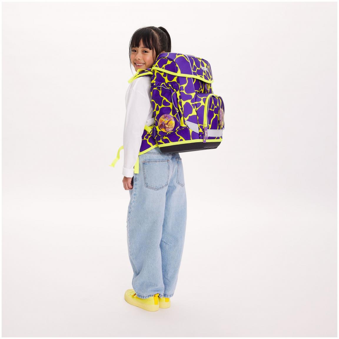 Eine Profilschiene aus Aluminium an der Rückseite der Schultasche sorgt für Stabilität. Gepolsterte Schultergurte, ein atmungsaktives Rückenpolster sowie verstellbarer Hüft- und Brustgurt erhöhen den Tragekomfort des Schulrucksacks. Der Hüftgurt kann bei Bedarf auch abgenommen werden. Eingearbeitete Reflektoren erhöhen die Sichtbarkeit bei schlechten Lichtverhältnissen.