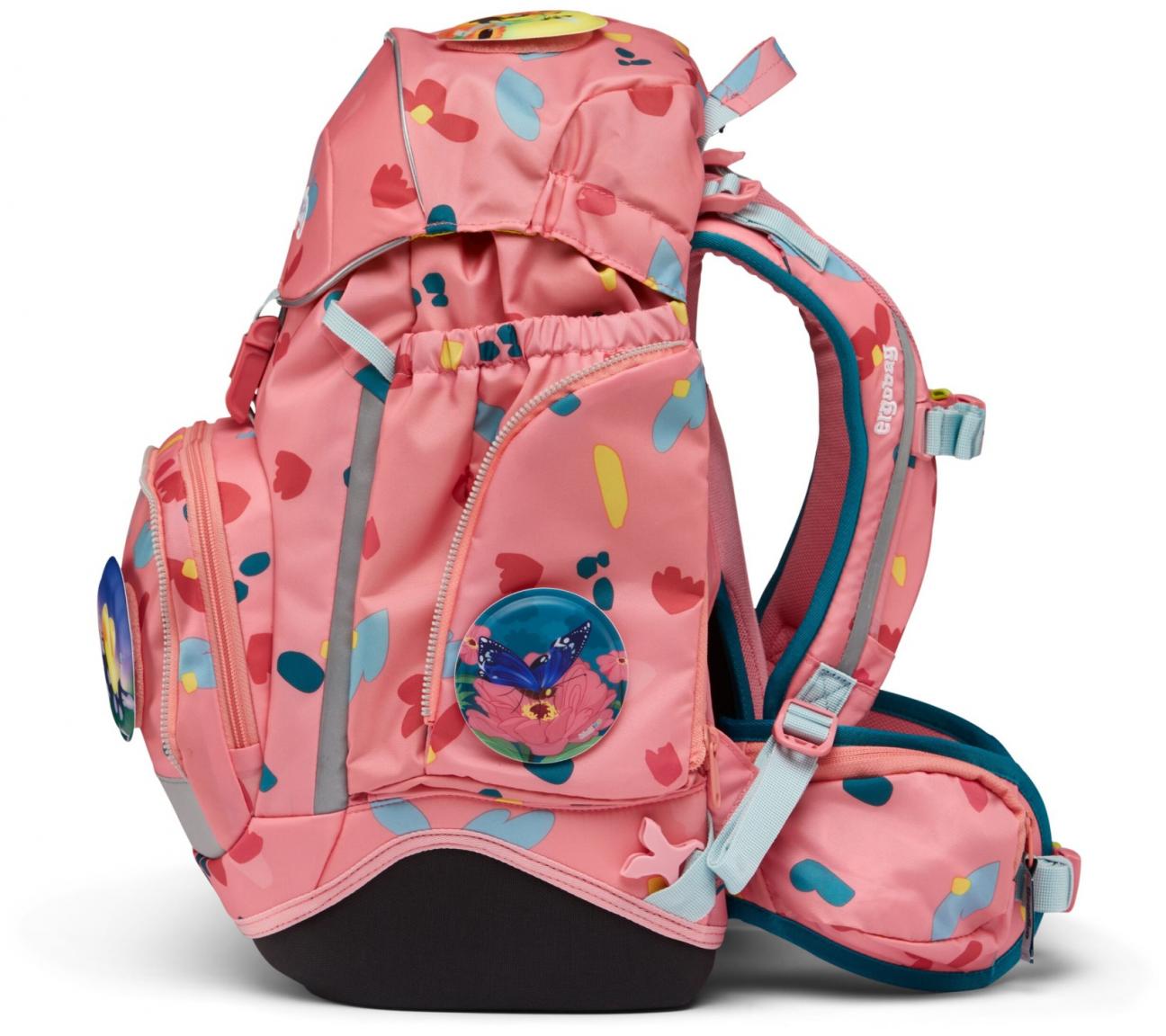 Ein bunter Blumenprint verleiht dem rosa Schulrucksack einen frischen Look. Das helle Innenfutter sorgt für Übersichtlichkeit.