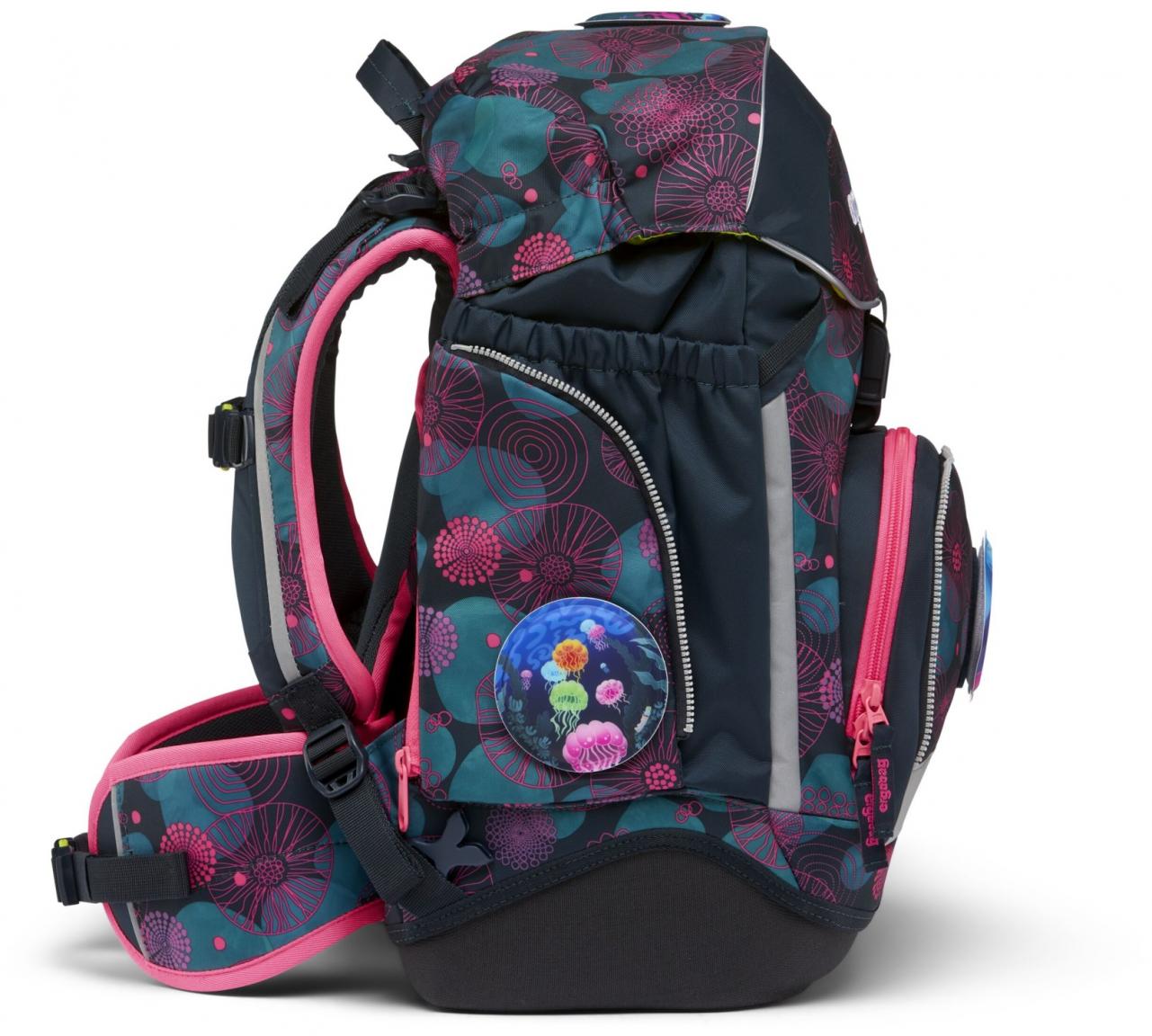 Eine Profilschiene aus Aluminium an der Rückseite der Schultasche sorgt für Stabilität. Gepolsterte Schultergurte, ein atmungsaktives Rückenpolster sowie verstellbarer Hüft- und Brustgurt erhöhen den Tragekomfort der Schultasche. Der Hüftgurt kann bei Bedarf auch abgenommen werden. Eingearbeitete Reflektoren sorgen für Sicherheit im Straßenverkehr.