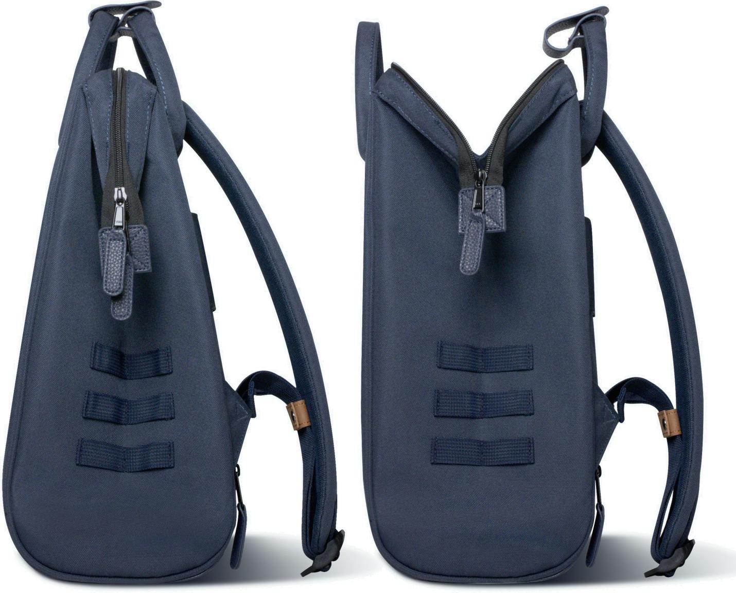 Der Wanderbackpack im Design Reykjavik RIC ist aus recyceltem Kunstfasergewebe in der Farbe Navy (dunkelblau) gefertigt. Details aus genarbtem Lederimitat runden den sportlichen Look des Rucksacks ab.