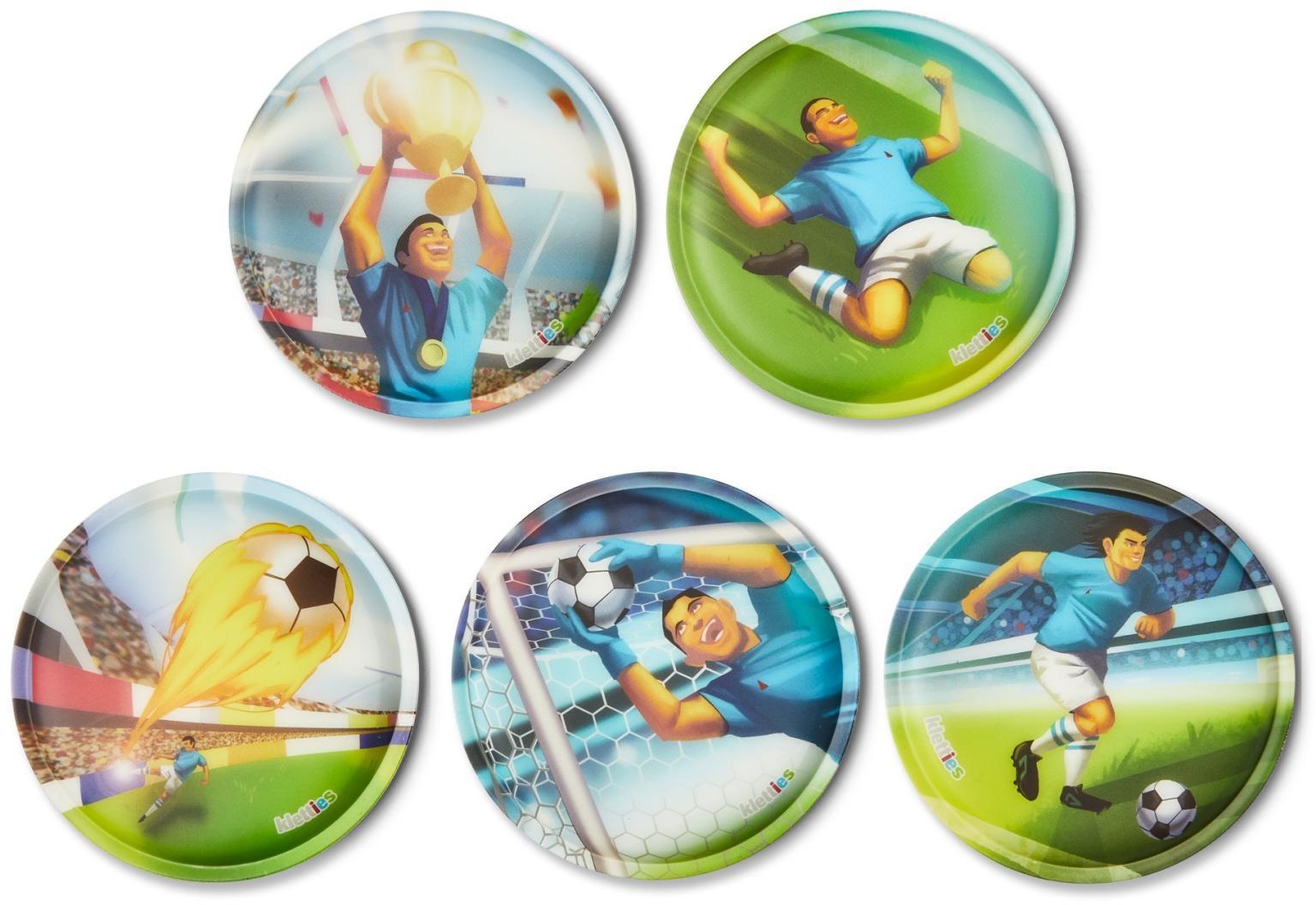 Individualisiere deine ergobag Schultasche mit diesem 5-teiligen Kletties-Set im aufregenden Fußballstürmer-Design.