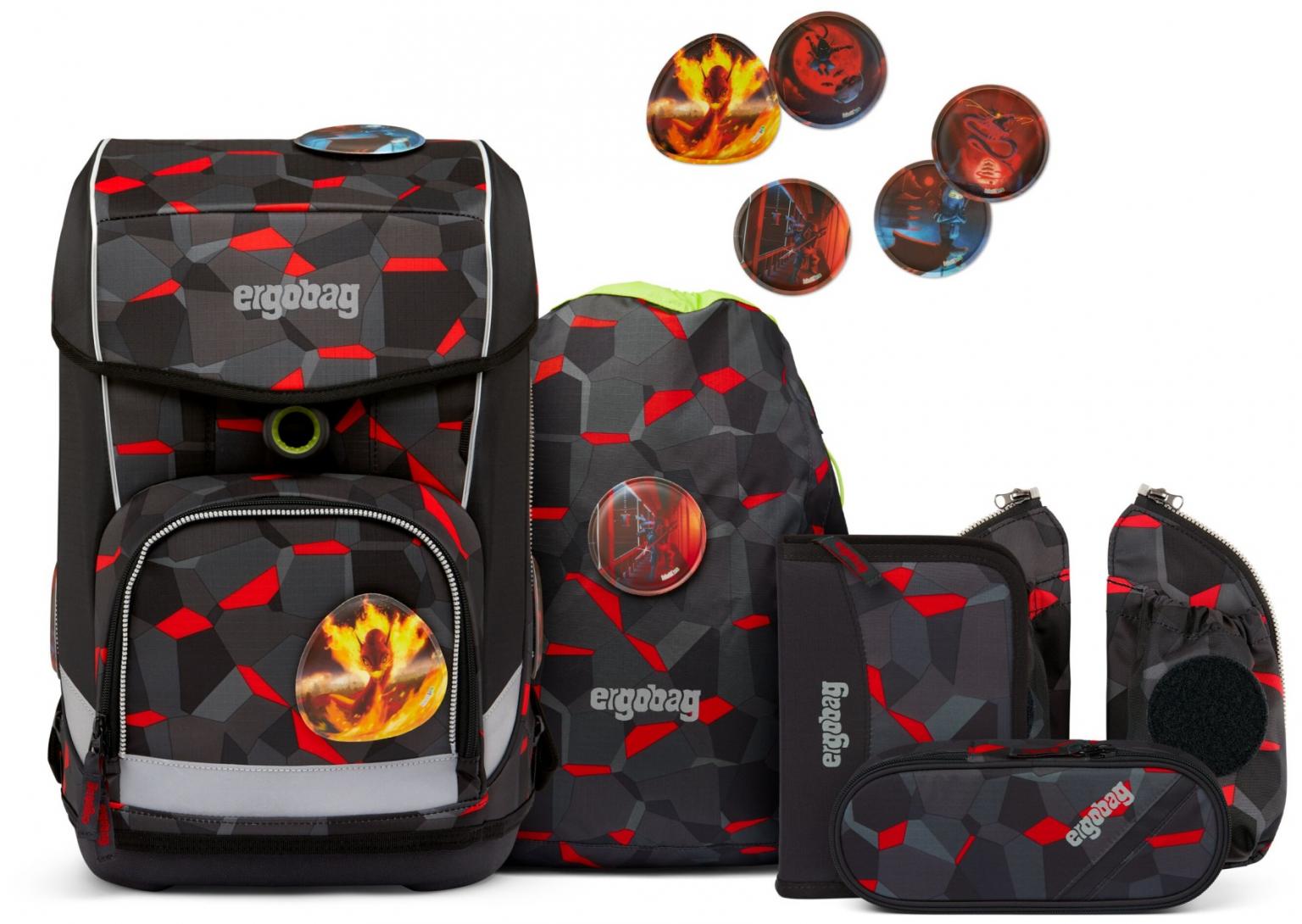 Neben der Schultasche bringt das Set noch eine befüllte Federmappe, ein Schüttelpennal, einen Sportbeutel und fünf Kletties mit passenden Ninja- und Drachen-Motiven sowie zwei abnehmbare Seitentaschen mit. Der Sportbeutel kann einfach am Schulranzen befestigt werden.
