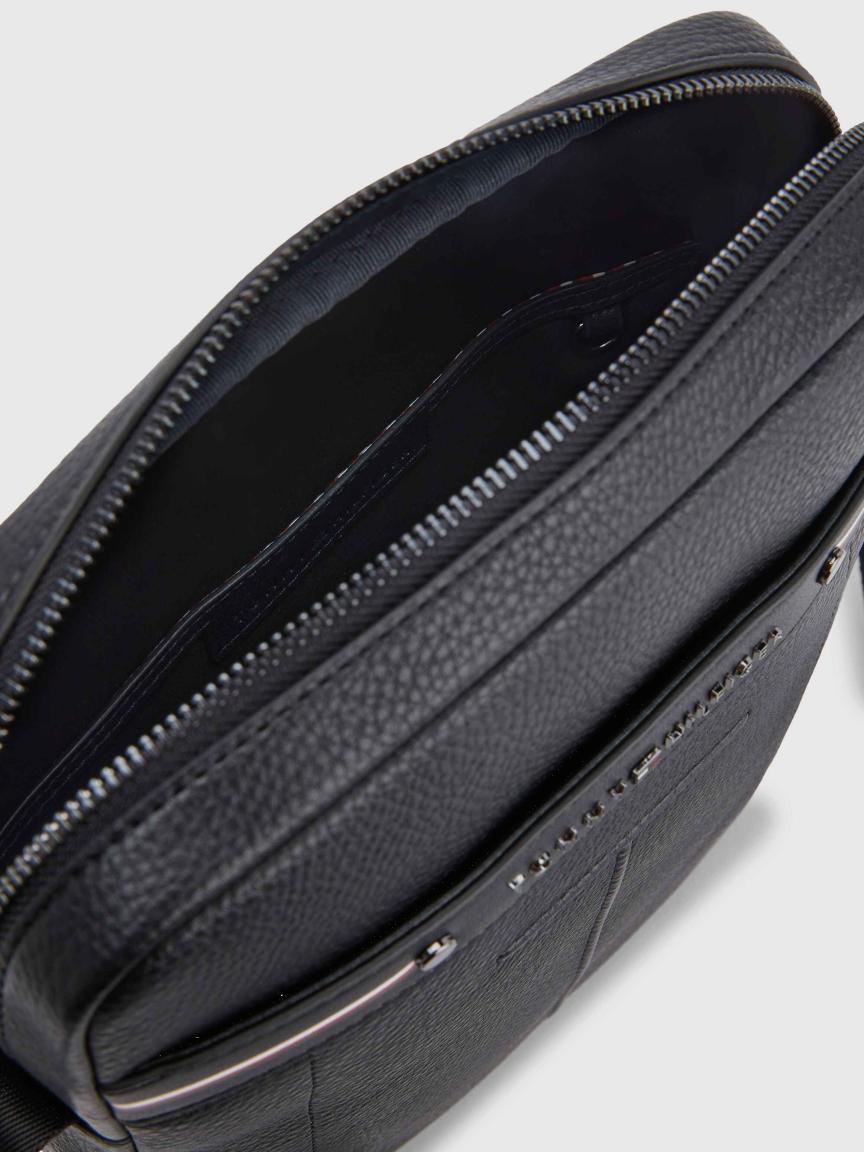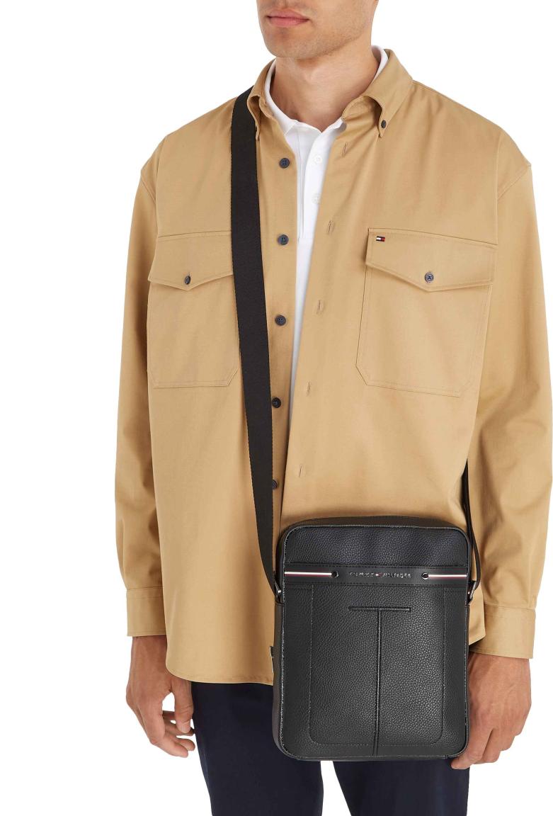 Die Crossovertasche der Marke Tommy Hilfiger aus der Serie TH Central Reporter ist aus hochwertigem Lederimitat in der klassischen Farbe Schwarz gefertigt. Die authentisch genarbte Oberfläche ist vom Echtleder kaum zu unterscheiden. Horizontale Markenstrips an der Taschenvorderseite verraten unserem Gegenüber sofort mit welcher Marke wir uns stylen.