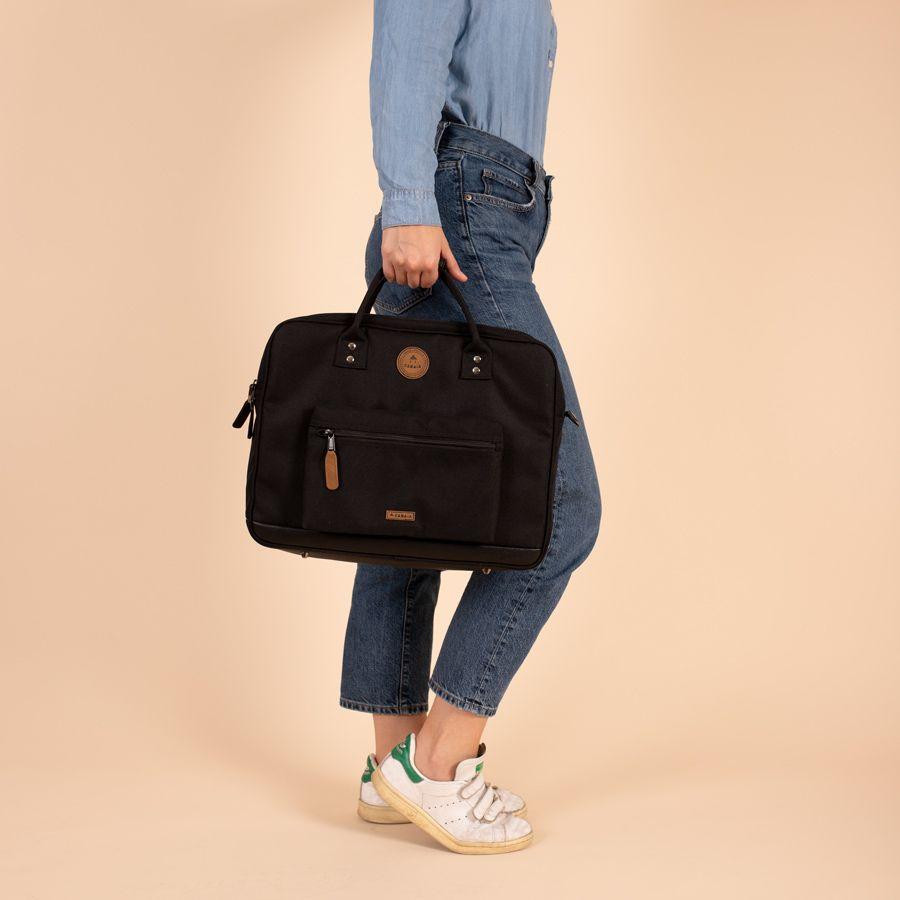 Gefertigt ist der Businesstasche im Design Berlin aus recyceltem Kunstfasergewebe in Schwarz (Black). Details aus veganem Kunstleder sorgen für einen sportlichen und modernen Look.