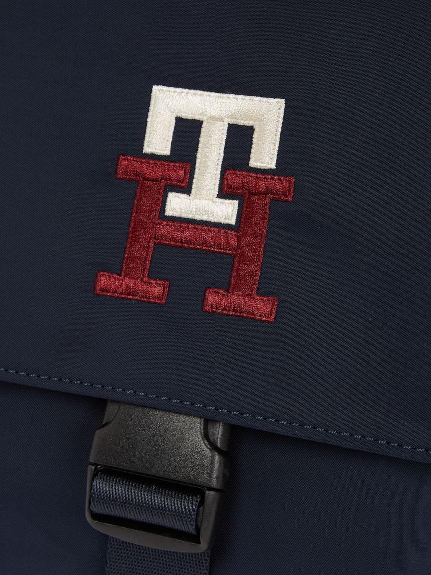 Das zu mindestens 50% recycelte Polyester in Blau harmoniert in typischer Markenmanier mit dem farbigen und gestickten Initialen von TH. Unverkennbarer Markencharme trifft hochwertige Verarbeitung.