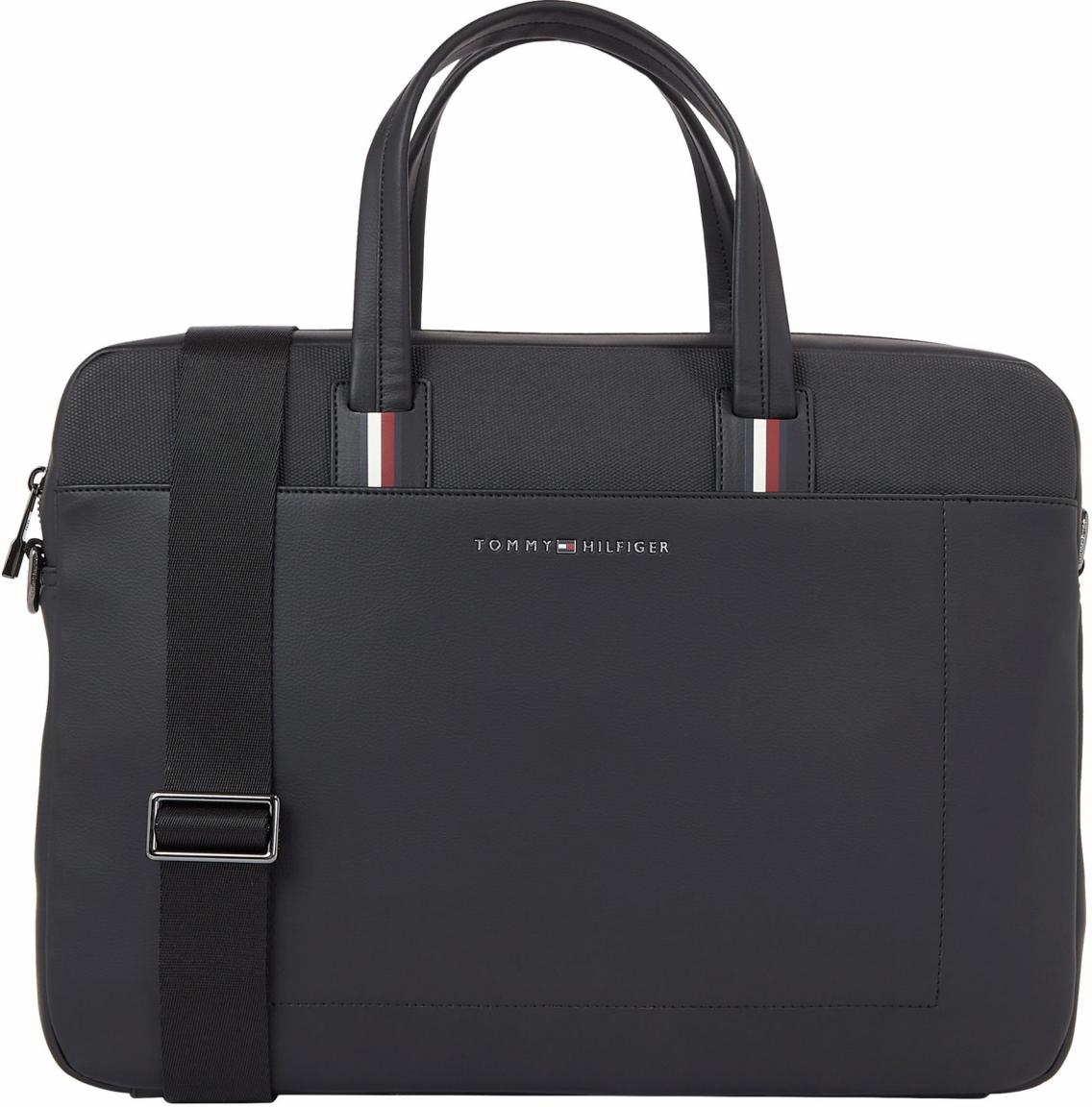Ob Büro oder Kundenmeeting - mit der Collegetasche TH Corporate Computer Bag von Tommy Hilfiger hat man immer das passende Accessoire dabei. Glattes und genarbtes Kunstleder ergeben ein schlichtes und doch außergewöhnliches Design für stilsichere Business Herren. Matt silberfarbene Metallelemente sorgen für den modernen Look der Laptoptasche. Das klassische Schwarz (Black) passt zu jeder Garderobe und setzt keine Grenzen im Stil.