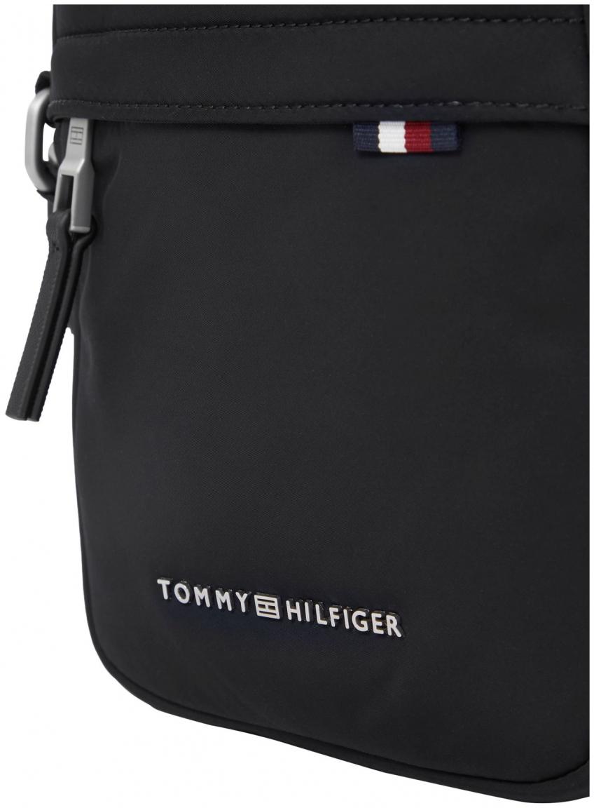 Das Taschen auch Männersache sein können, zeigt Tommy Hilfiger mit der Herrentasche der Serie TH Signature Mini Reporter. Unten an der Vorderseite des Reporters befindet sich der silberfarbene Markenschriftzug. Darüber ist noch ein verdecktes Reißverschlussfach.