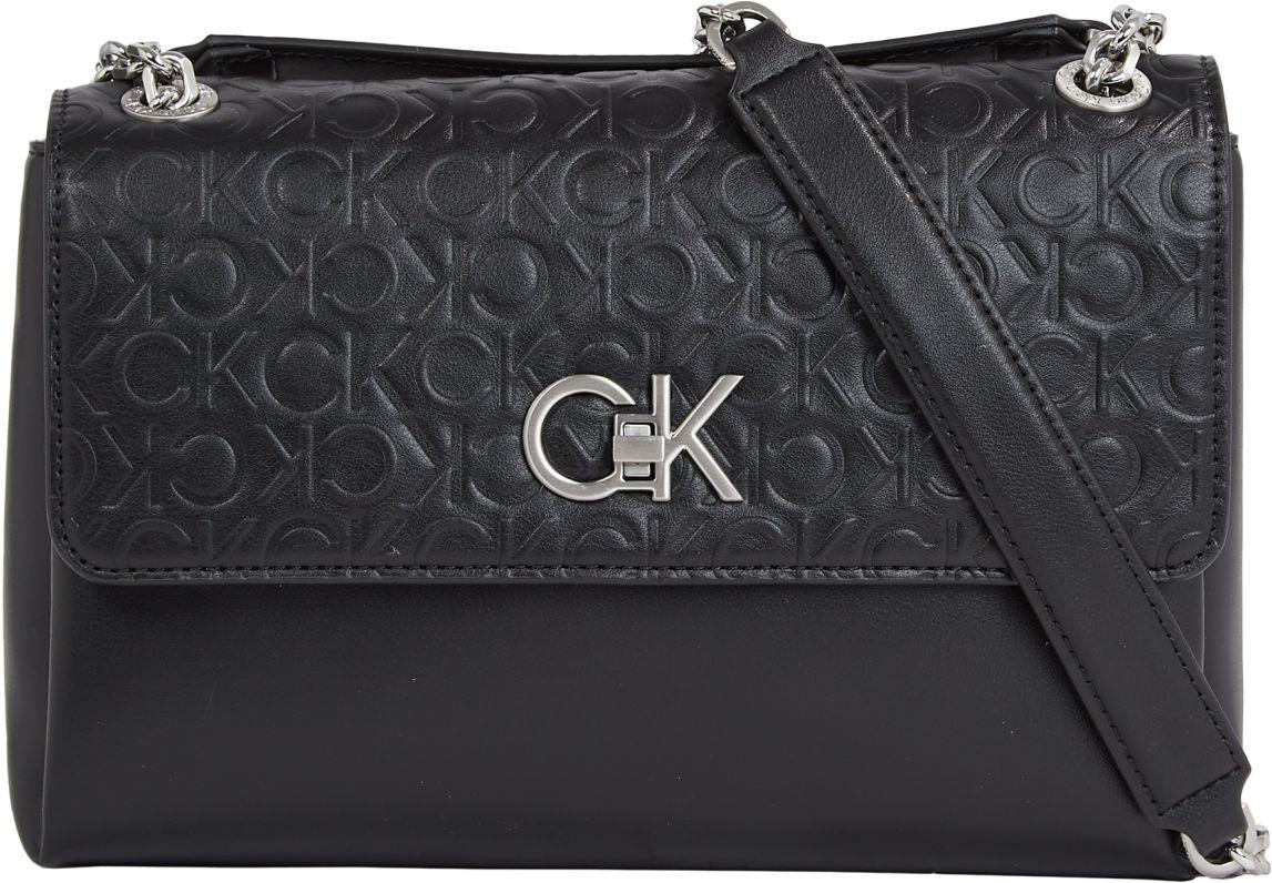 In klassischer Eleganz mit einer gewissen Lässigkeit präsentiert sich die Schultertasche EW Conv Crossbody EMB MN aus der Serie Re-Lock von Calvin Klein. Glattes Kunstleder in schlichtem Schwarz (CK Black) wird durch die Monogramm-Prägung am Überschlag aufgelockert, mattiert silberfarbene Metalldetails sorgen für einen cleanen und universellen Look der Umhängetasche.