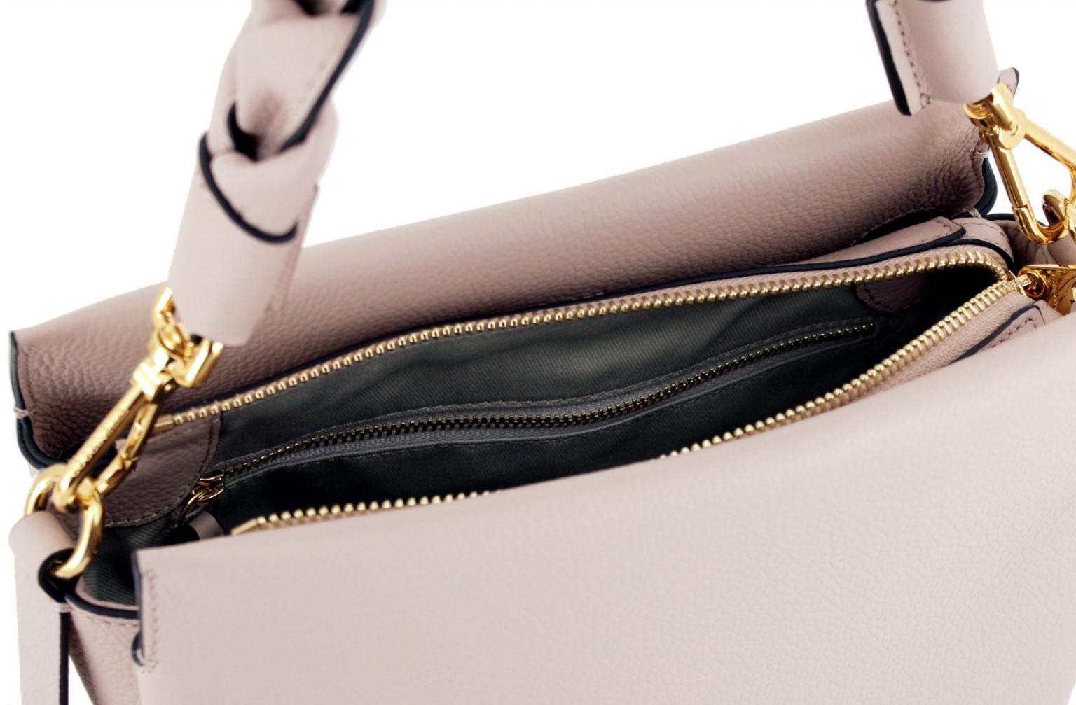 Ein ganz besonderes Highlight ist der kurze Tragehenkel, mit dem die Ledertasche in der Hand oder Armbeuge getragen werden kann. Seine Flechtoptik verleiht der Handtasche ein elegante und doch lässige Ausstrahlung.