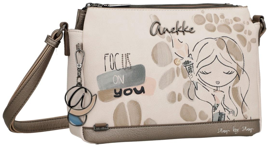 Die Vorderseite dieser praktischen Damentasche ziert eine Konturstickerei, in der Hand wird die olympische Fackel gehalten. Ein Sinnbild für die Kraft und Stärke einer Frau. Ziernieten und das Metallic-Finish an manchen Teilen des Lederimitats sorgen für einen auffälligen Look. Auch das kunstvoll gestaltete Markenemblem aus anthrazitfarbenem Metall harmoniert hervorragend mit dem besonderen Design. Das beige Kunstleder ist leicht genarbt und erzeugt so ein lederähnliches Gefühl.