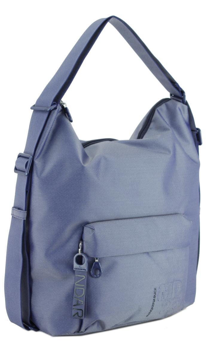 Ein absolutes Fashion-Statement ist der Beutelrucksack Hobo aus der Serie MD20 von Mandarina Duck. Die Rucksacktasche aus federleichtem Kunstfasergewebe in der Farbe Jeans (leuchtend blau) kann auf verschiedene Arten getragen werden. Durch die originelle Riemenanbringung kann die Schultertasche durch Zusammenziehen der Schulterriemen einfach zu einem Rucksack umfunktioniert werden.