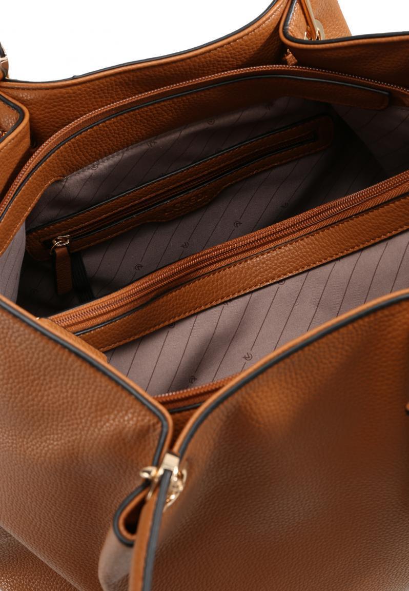 Die Beuteltasche Ebony der Marke L.Credi ist aus hochwertigem Lederimitat in der Farbe Cognac gefertigt. Die authentische Ledernarbung ist kaum zu unterscheiden zu Echtleder. Innen mit Textilstoff ausgekleidet, eröffnet sich ein grosszügiges Platzangebot mit einer guten Fächeraufteilung. Durch die glänzenden goldfarbenen Metalle erhält die Beuteltasche eine sehr exklusive Ausstrahlung und lässt sich gut zu jedem Outfit kombinieren.