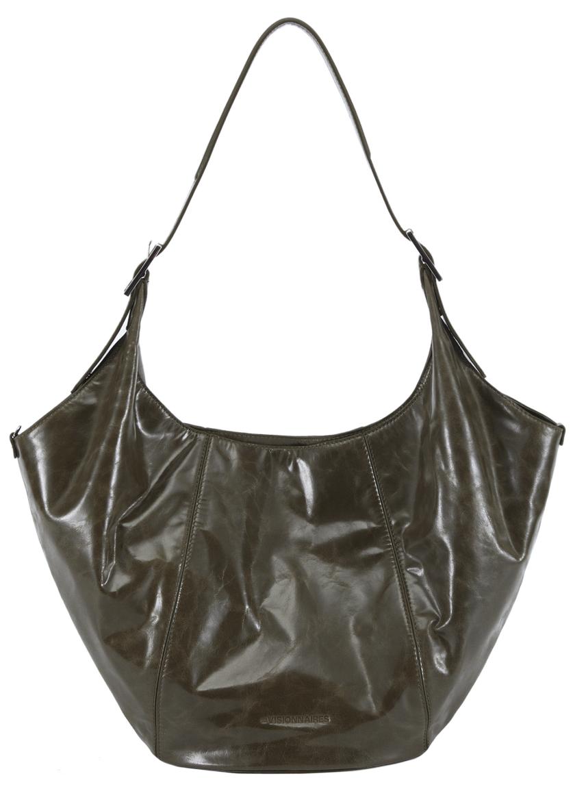 Aureichend Platz für alle alltäglichen Essentials bietet die Beuteltasche Amelie aus der Kollektion Essential Icon Crinkle von Les Visionnaires. Gefertigt ist die Hobo Bag aus Crinkle-Leder im Farbton Finch (dunkles Olivgrün). Eine besondere Ausstrahlung erhält die Schultertasche durch die schrägen Teilungsnähte und das spezielle Glanzfinish des Leders.