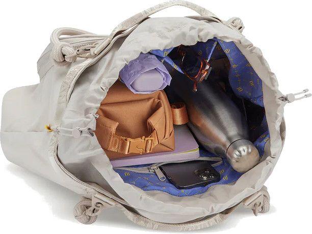 Gefertigt aus recyceltem PET Flaschen, passt sie sich zudem auch noch an die aktuelle Umweltsituation an und schont Ressourcen. Im freundlichen Farbton Sand (Beige) mit glanzvollen Details und trendiger Logomanie sorgt dieses Accessoires für Aufsehen.