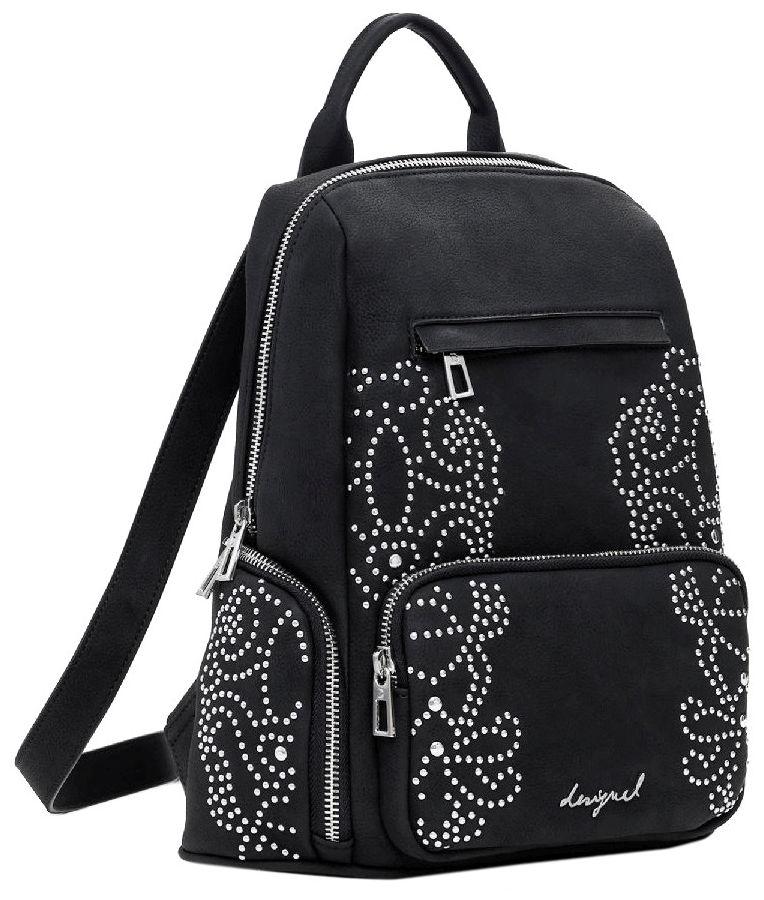 Er ist aus anschmiegsamen Kunstleder im klassischen Farbton Negro (Schwarz) gefertigt. Ein hübsches Nietenmuster ziert den mittelgroßen Backpack. Dazwischen findet noch der filigrane Markenschriftzug seinen Platz.