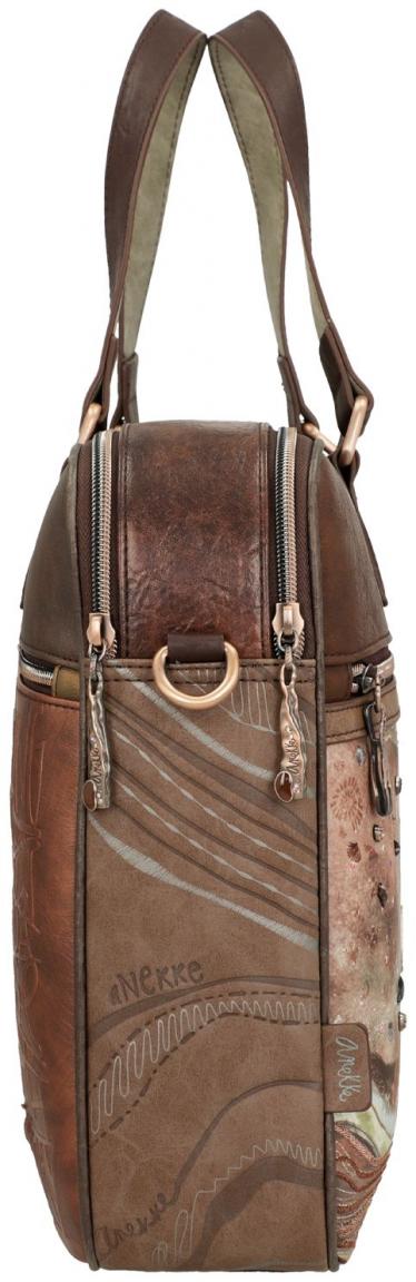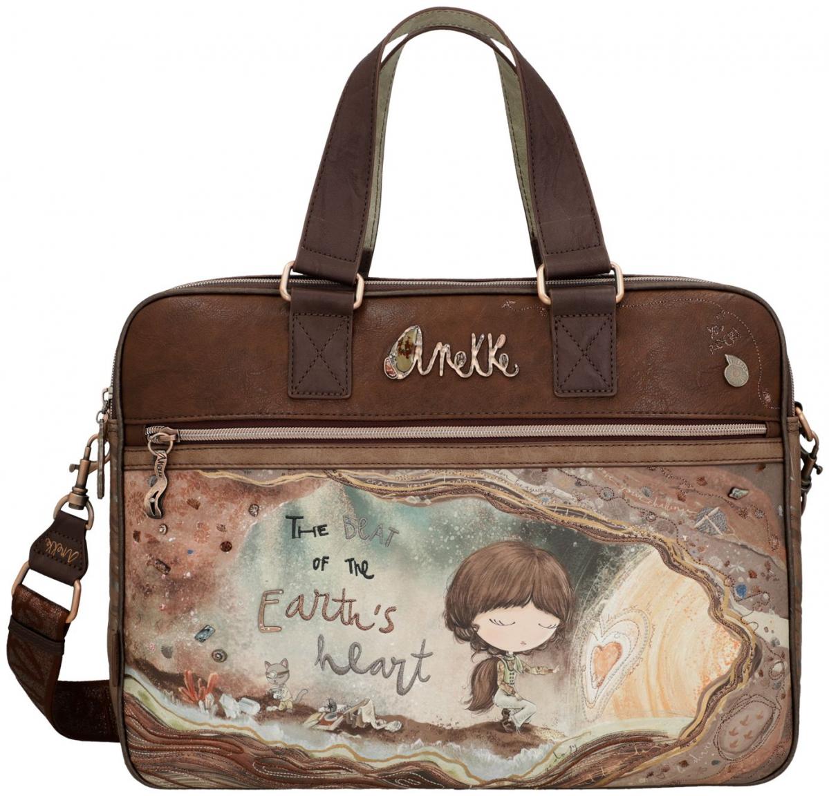 Die Vorderseite der Aktentasche zeigt Anekke als Wissenschaftlerin, umgeben von den bestickten Gesteinsschichten und eindeutigen wissenschaftlichen Details, ihr treuer Begleiter Towanda, darf natürlich auch nicht fehlen. Bei genauerer Betrachtung des Motivs entdecken wir Fossilien, Kristalle und Botschaften. Kleine Metallapplikationen betonen das Thema zusätzlich. Auch das individuell gestaltete Markenemblem passt sich hervorragend dem edlen Look der Businesstasche an.