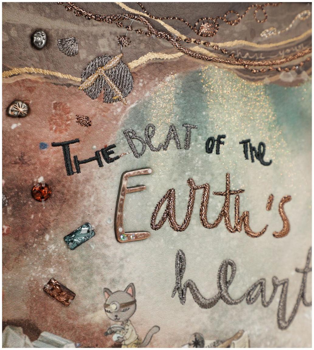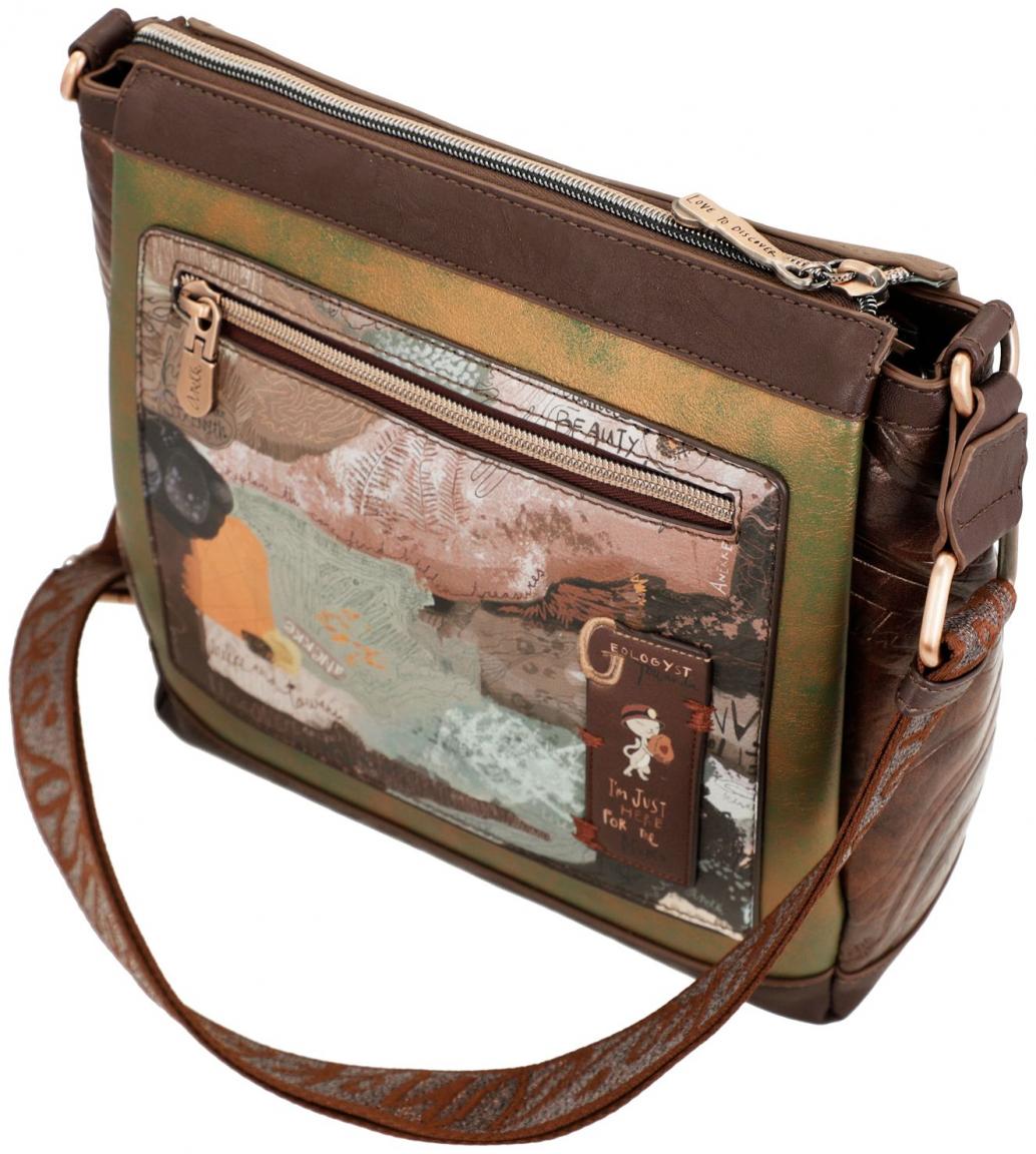 Als Hommage an die dänische Geologin Inge Lehmann zeigt der Print an der Vorderseite der Schultertasche Anekke im Look der Wissenschaftlerin. Zusätzlich betont wird das Motiv von schimmernden Akzenten, funkelnden Juwelen und glänzenden Ziernähten. Auch das Markenlogo passt sich dem erdverbundenen Design der Umhängetasche perfekt an.