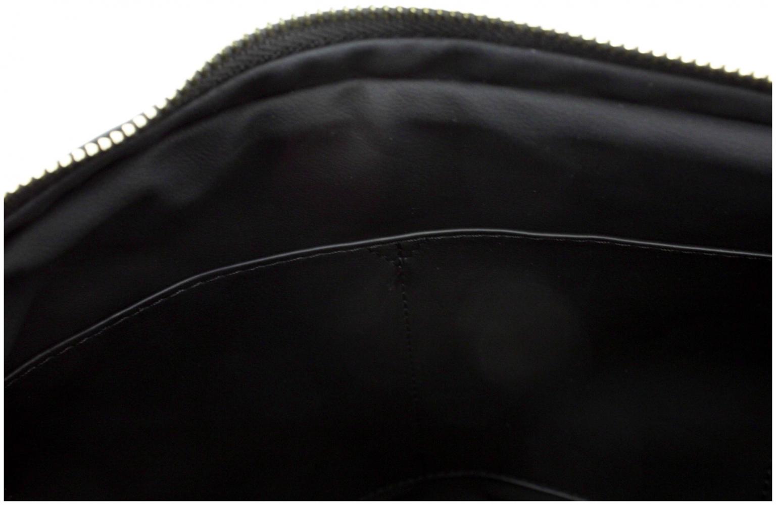 Geschlossen wir die Umhängetasche mittels Reißverschluss. Im Inneren ist die Beuteltasche mit rotem Kunstleder ausgestattet.