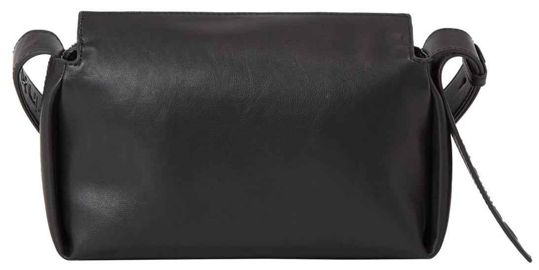 Geöffnet wird die Schultertasche mittels verdecktem Reißverschluss. Innen ist die Crossbodytasche mit einem schwarzen Textilfutter ausgestattet. Im Hauptfach befinden sich noch zwei praktische Kartenfächer.