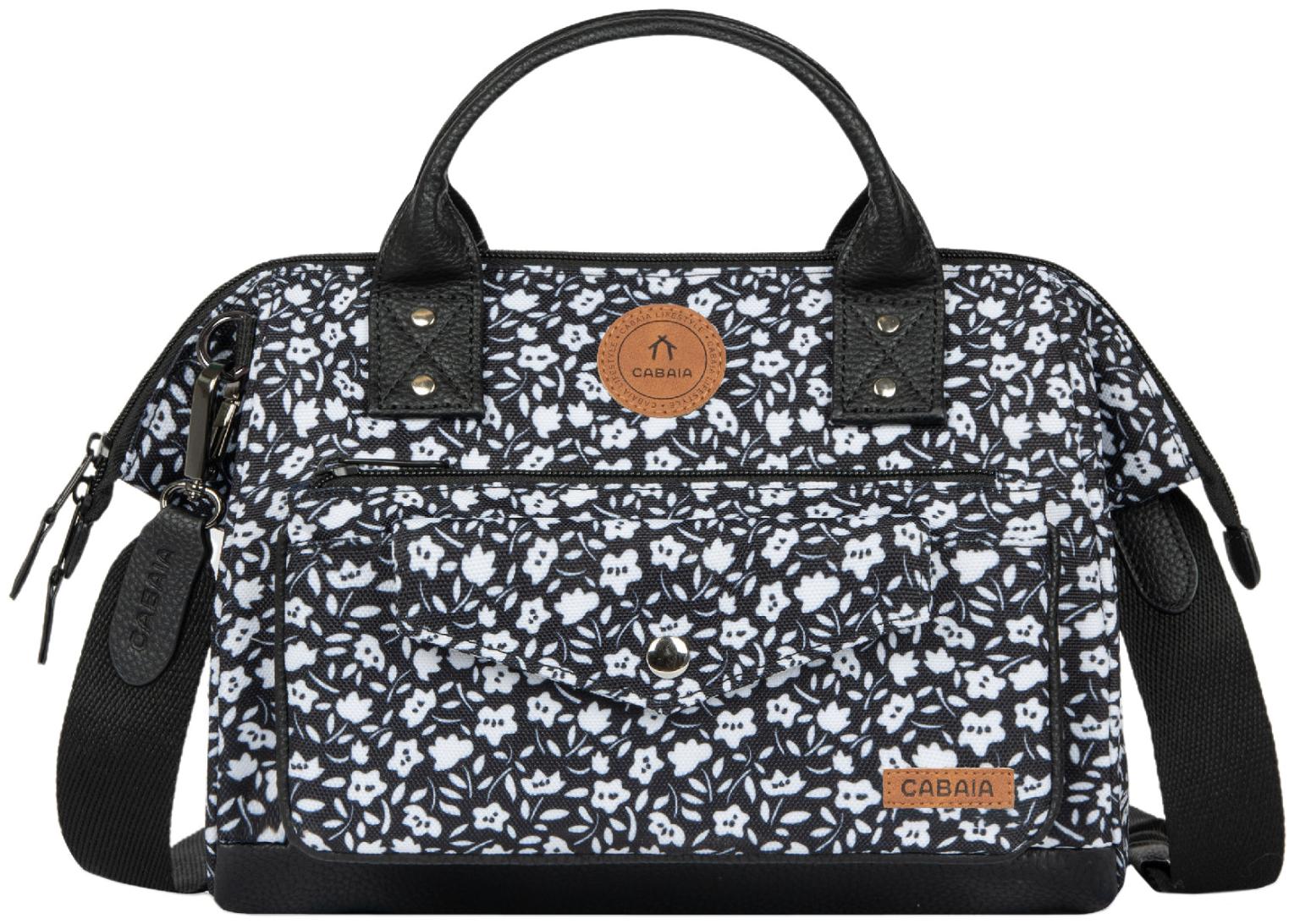 Gefertigt ist die modische Crossovertasche im Design Catane. Das vegane wasserabweisende Kunstleder überzeugt mit den Farben Schwarz und Weiß, das ansprechende Blumenmuster verleiht der Schultertsache einen feminine Touch.