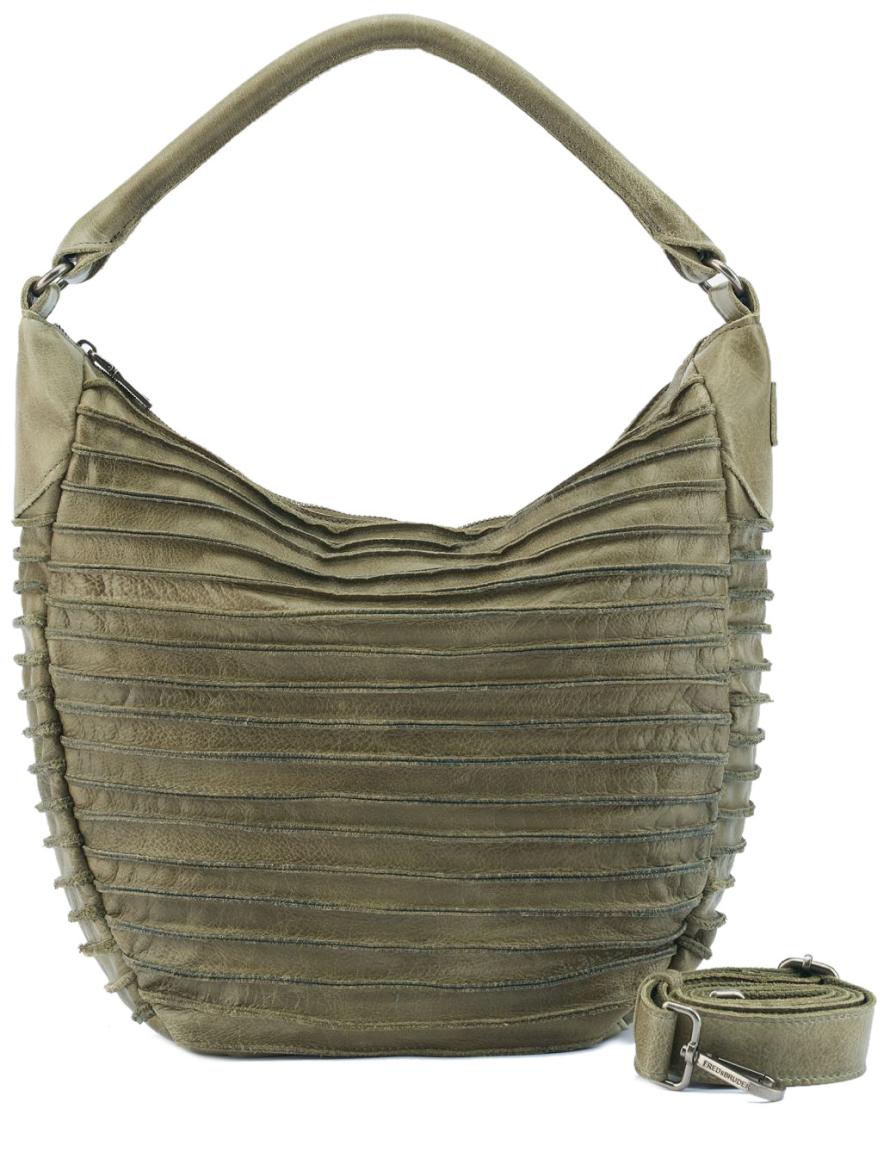 Mit der Ledertasche aus der Riffeltier S Kollektion präsentiert FredsBruder einen zeitlosen Klassiker im modernem Gewand. Die charakteristische Allover-Riffelung des genarbten Leders verleiht der Hobotasche in Olivgrün (Olive Green) einen urbanen, lässigen Look mit dezentem Vintage-Charakter.