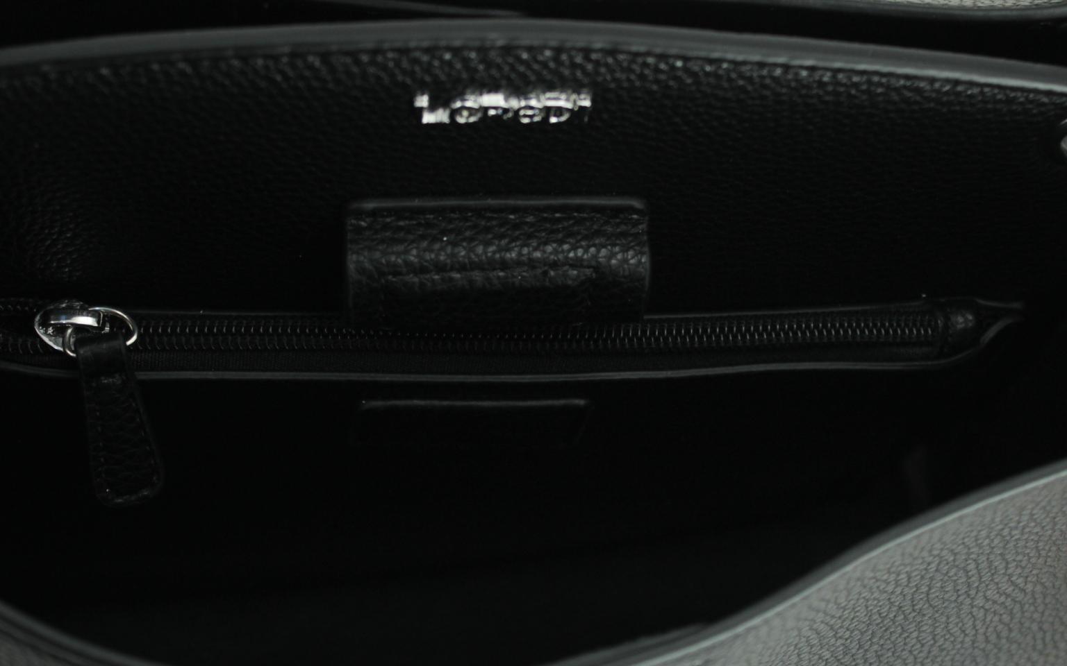 Diese zweigeteilte Henkeltasche von L.Credi aus der Serie Fabienne ist aus hochwertigem Lederimitat in der Farbe Schwarz mit authentisch genarbter Oberfläche gefertigt.