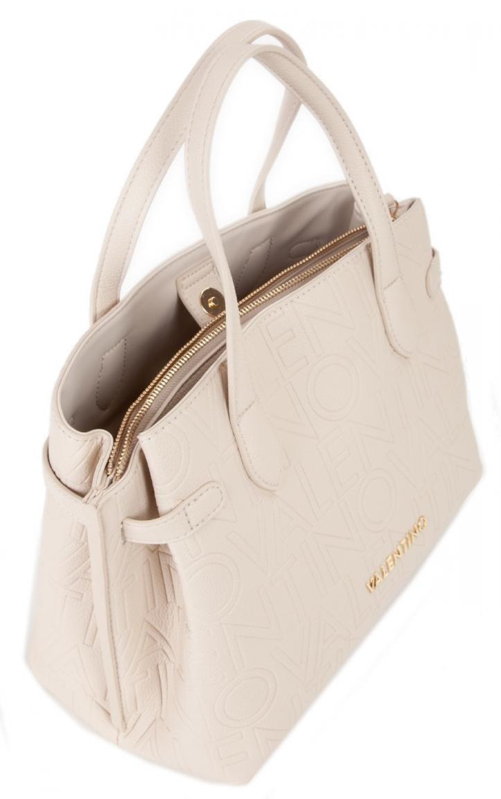 In klassisch elegantem Look zeigt sich diese Kurzgrifftasche aus der Kollektion Pansy von Mario Valentino. Gefertigt ist die Handtasche aus genarbtem Kunstleder in hellem Beige (Ecru) mit angenehmer Haptik. Durch die Oberflächenstruktur erhält die Henkeltasche eine authentische Lederoptik.