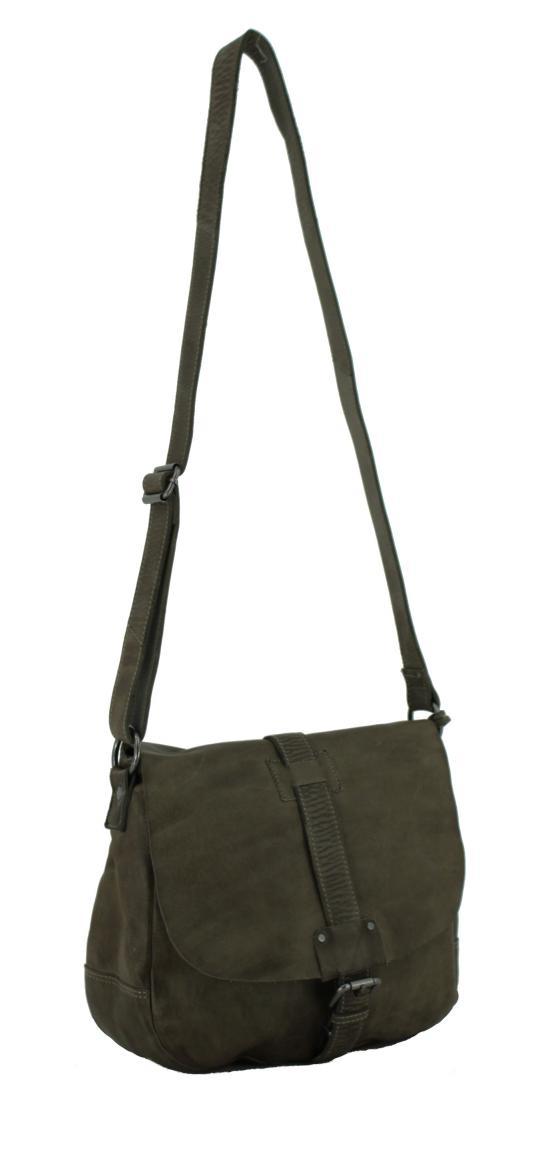Die Überschlagtasche Nauja der Marke Harbour2nd ist aus hochwertigem Vollrindleder in der Farbe Khaki (grün) gefertigt.