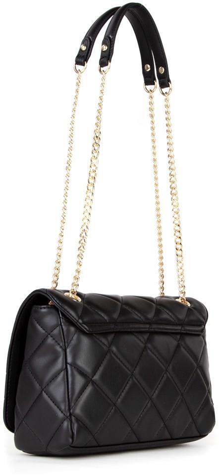 Ein absolutes Fashion Highlight ist diese elegante Überschlagtasche aus der Serie Ocarina von Mario Valentino. Gefertigt aus geschmeidigem Glattlederimitat in klassischem Schwarz (Nero) besticht die Schultertasche durch die rautenförmigen Steppnähte. Eine dezente Polsterung sorgt für den leichten 3D-Effekt der Chain Bag.
