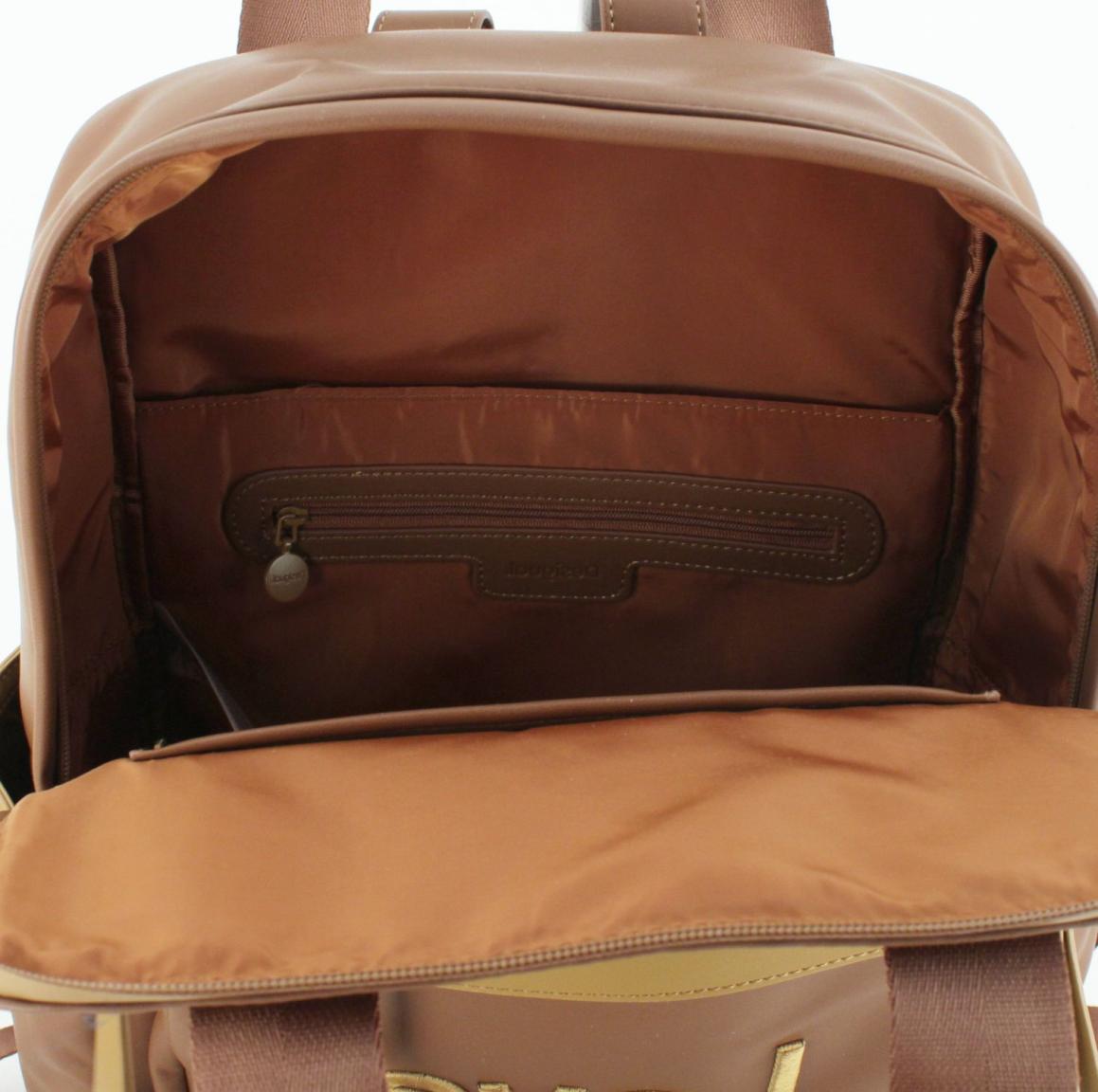 Ein ganz besonderes Accessoire ist der Damenrucksack Randers aus der Serie Fluor von Desigual. Geschmeidiges Glattlederimitat in zeitlosem Braun (Camel) zeichnet den Backpack aus. Die Vorderseite des Taschenrucksacks ziert eine auffällige LOVE-Stickerei.