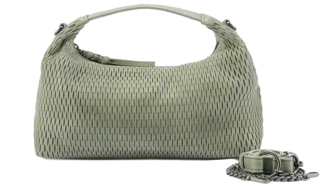 Sie ist aus weichem, hochwertigem Leder in der frischen Nuance Leaf, ein heller Grünton, gefertigt und begeistert mit geringem Eigengewicht.