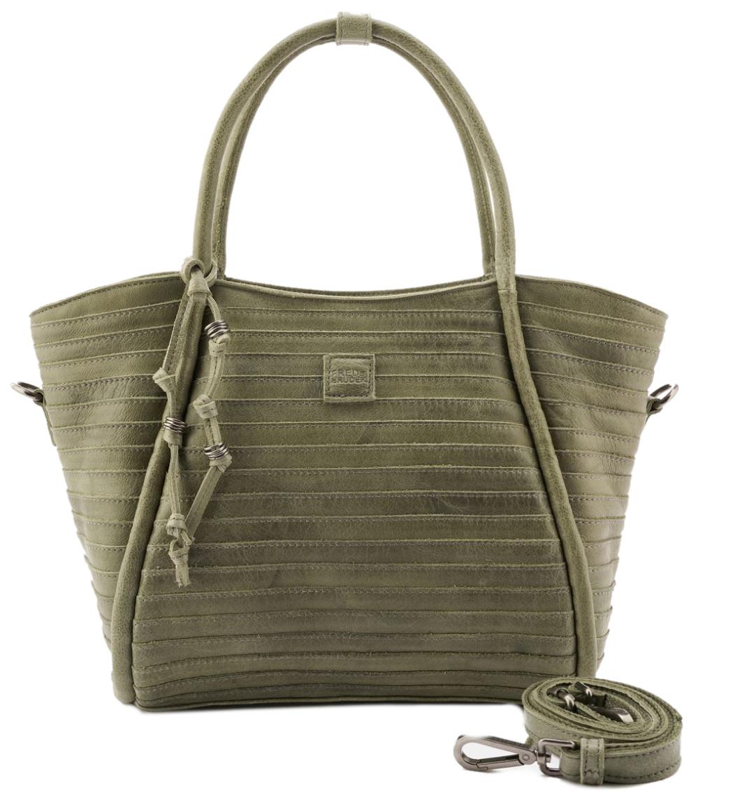 Mit der FredsBruder Henkeltasche aus der All In Layer-Kollektion kann man einfach nichts falsch machen. Diese Damentasche im Farbton Olive Green lässt sich mühelos kombinieren und ist vielseitig tragbar. Innenliegende Lederbänder lassen die Taschenform verändern.