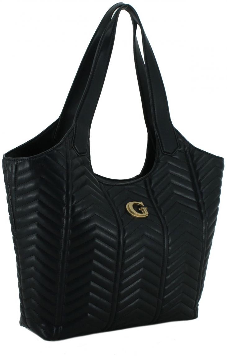 Ein wahres Fashion-Highlight ist diese gesteppte Shoppertasche aus der Serie Lovide von Guess. Die trendige Tote Bag aus glattem Kunstleder in klassischem Schwarz (black) ist allover mit spitz zulaufenden Steppnähten verziert. Eine leichte Polsterung sorgt für den dezenten 3D-Effekt der Stepptasche.