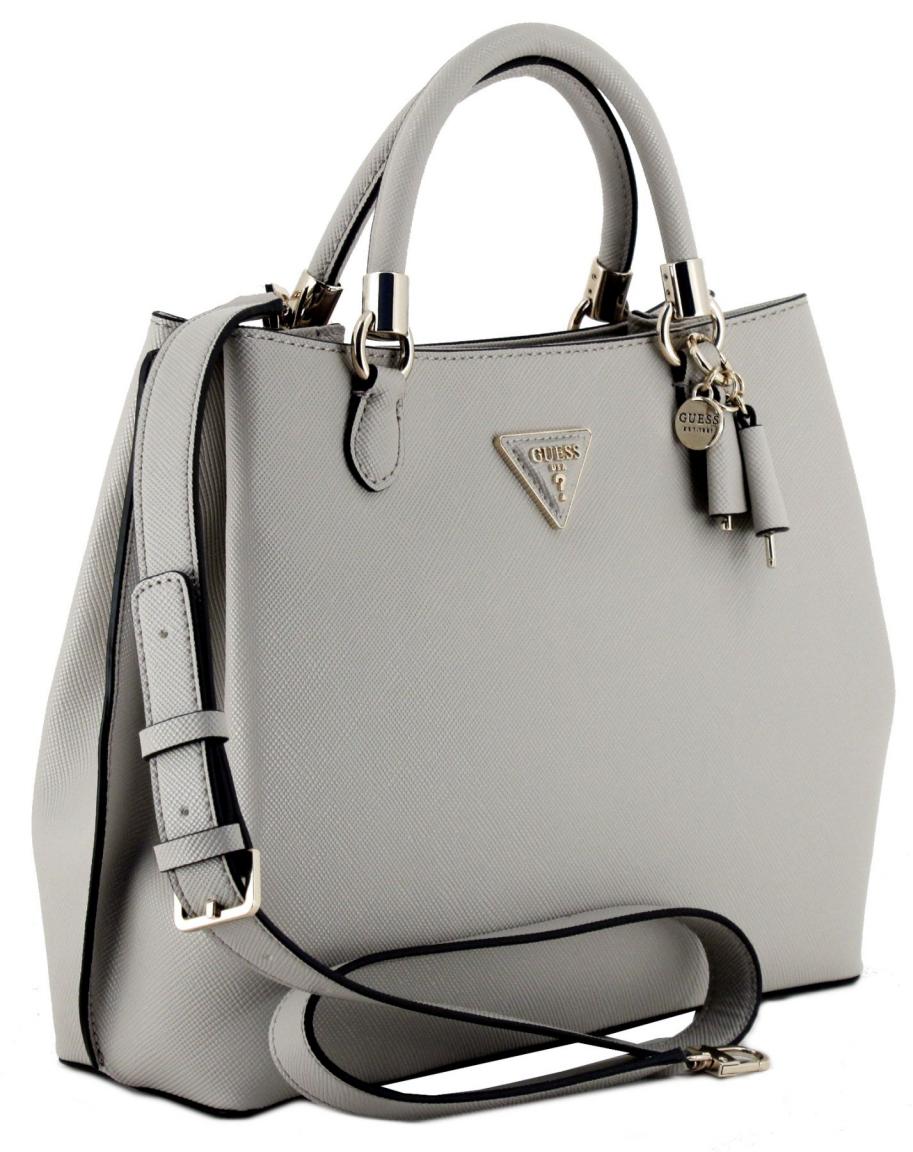 Die Henkeltasche aus der Gizele Serie von Guess vereint einen lässigen und entspannten Look. Gleichzeitig ist sie zeitlos elegant und handlich. Die Handtasche ist aus Kunstleder in der Farbe Taupe gefertigt und mit einer auffälligen Saffiano-Prägung versehen. Das außergewöhnliche Design wird durch das farblich abgestimmte Markenemblem auf der Vorderseite der Kurzgrifftasche zusätzlich betont. Die goldfarbenen Metallelemente unterstreichen das elegante Accessoire.