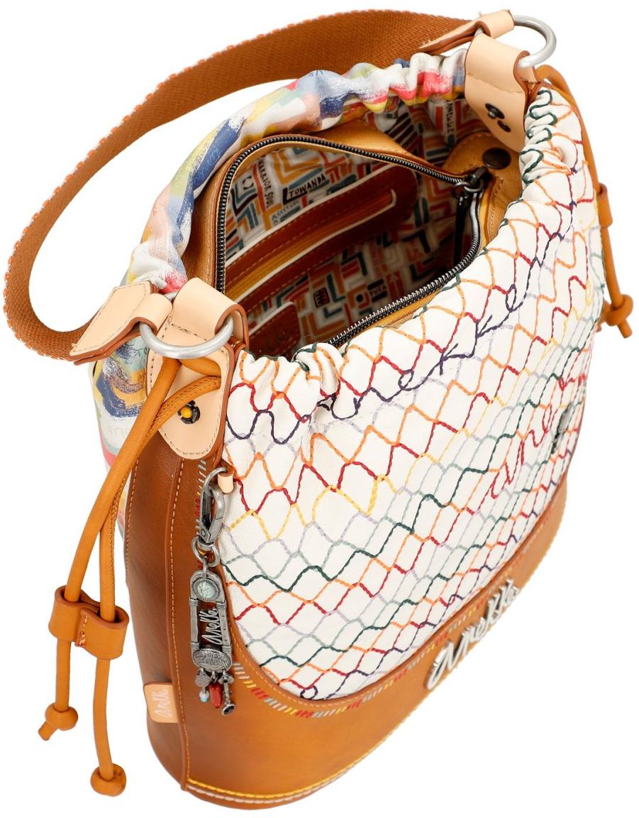 Die farbenfrohe Stickerei an der Vorderseite der Handtasche repräsentiert die spirituelle und kunsthandwerkliche Einheit dieser Völker, die eine magische Verbindung in der kunstvollen Kreation finden.