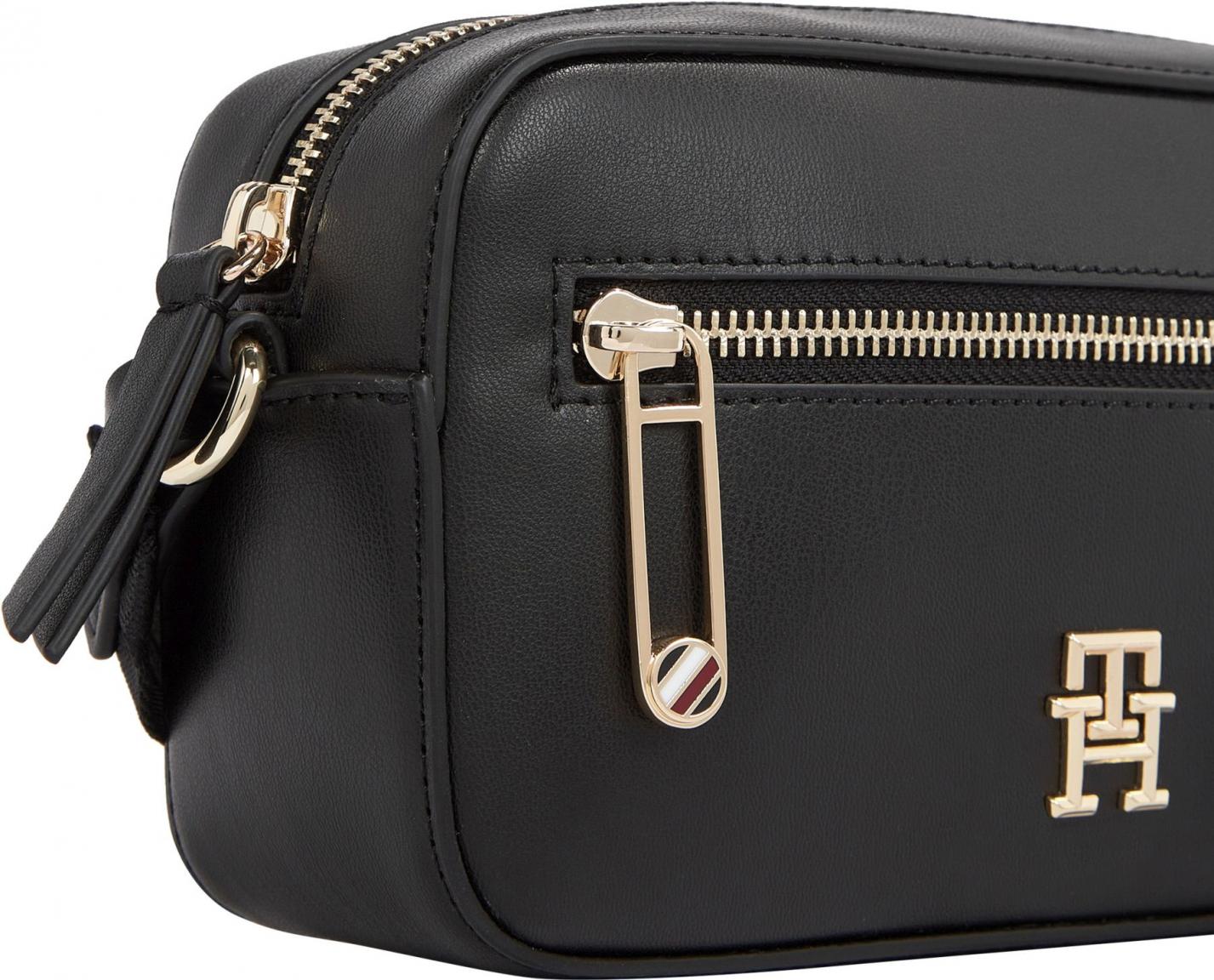 Praktische Kameratasche von Tommy Hilfiger aus der TH Iconic Camera Bag Kollektion. Das hochwertige Lederimitat im klassischen Farbton Schwarz ist pflegeleicht und lässt sich perfekt zu jedem Outfit kombinieren.
