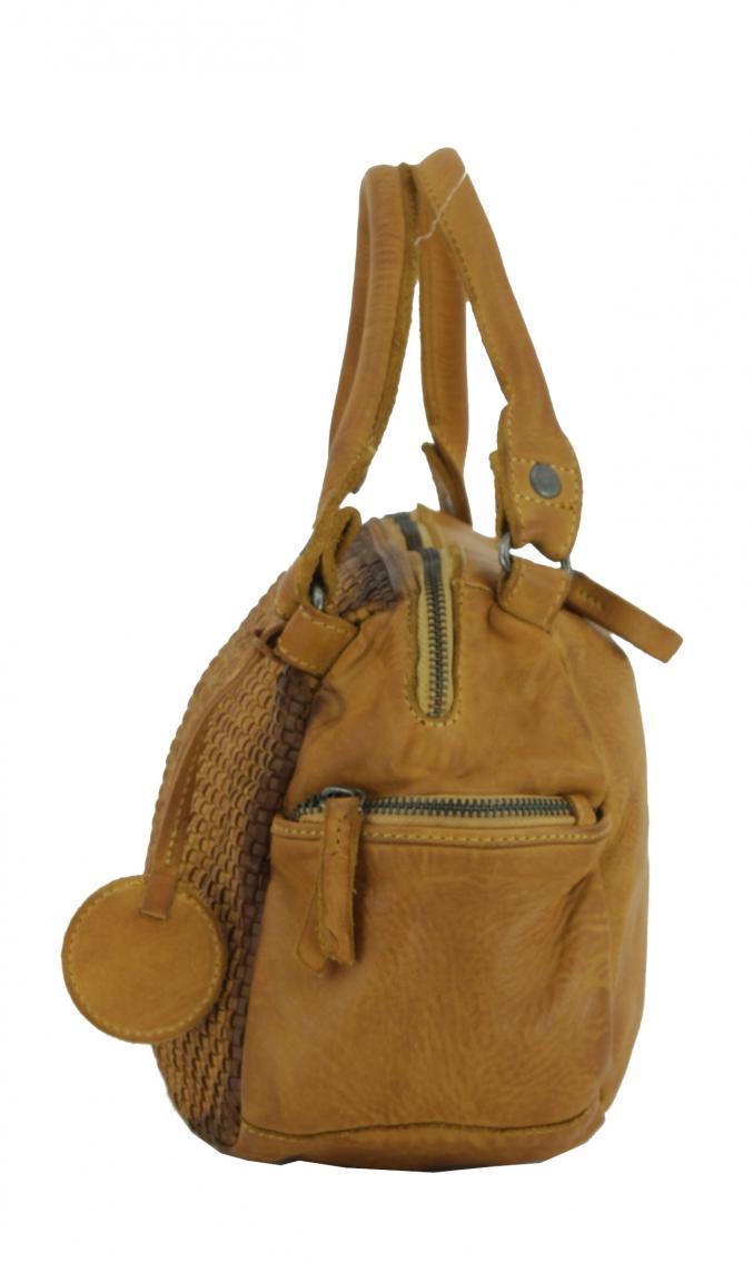 Die Kurzgrifftasche Julia aus der Serie Soft Weaving der Marke Harbour2nd ist aus hochwertigem, weichem Vollrindleder in der Farbe Cognac (braun) gefertigt. Durch das Flecht-Design kommen die Farbunterschiede des Vintage-Stils im Leder besonders gut zur Geltung und verleihen der Damentasche einen ganz besonderen Charme.