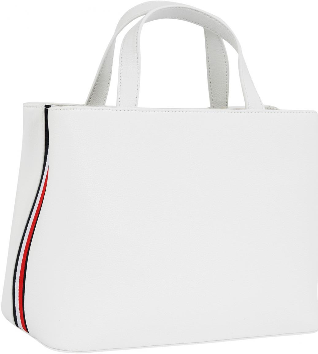 Stilsicher und trendy geht es mit der eleganten Tommy Hilfiger Kurzgrifftasche aus der TH Essential SC Satchel Kollektion in den Alltag. Die Handtasche aus hochwertigem Lederimitat in der Farbe Ecru (weiß) ist sowohl für den täglichen Gang ins Büro das perfekte Accessoire, als auch für einen gemütlichen Stadtbummel. Die Vorderseite der Handtasche ziert ein goldfarbenes TH-Interlock-Emblem. Die seitlich eingearbeiteten Webbänder in den Hilfiger Flag Stripes verleihen der Kurzgrifftasche das gewisse Etwas.