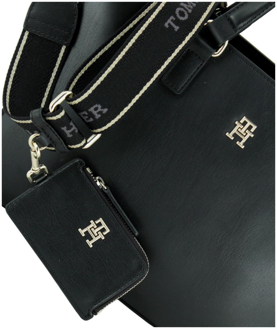 Der elegante Look wird noch durch die glänzend goldfarbenen Metallelementen unterstrichen. Das kunstvolle TH Emblem sticht an der Vorderseite der Handtasche hervor.