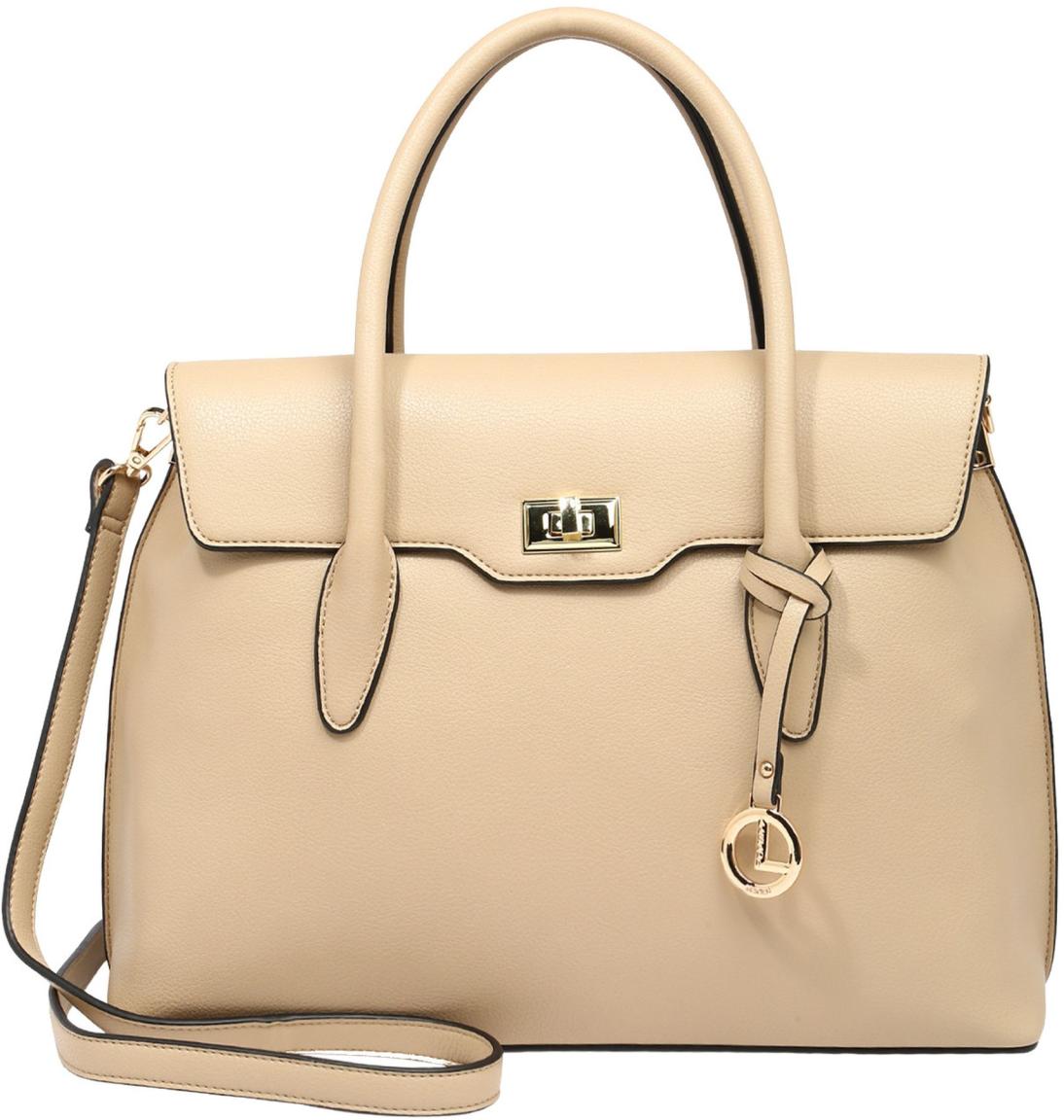 Diese Damenhandtasche der Marke L.Credi aus der Serie Idalia ist aus hochwertigem Lederimitat in der zeitlosen Farbe Macadamia (beige) mit authentisch genarbter Oberfläche gefertigt. Die Innenseite der Henkeltasche ist mit einem grauen Textilfutter ausgestattet.