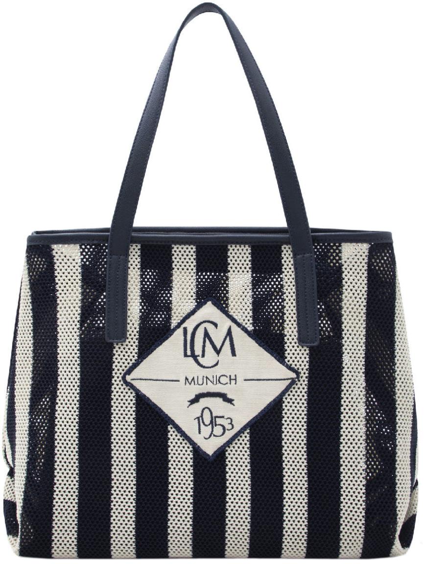 Die moderne 2in1 Handtasche Rima von L.Credi überzeugt durch ihr hochwertiges Design und ihre durchdachte Verarbeitung. Das robuste, grob gewebte Obermaterial in Meshoptik mit dunkelblauen und cremefarbenen Streifen erzeugt einen trendigen maritimen Style.