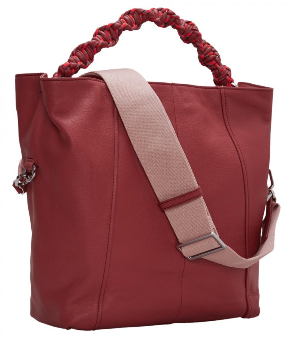 Der Henkelt der Ledertasche ist handgeknüpft.