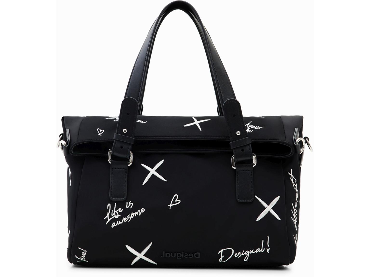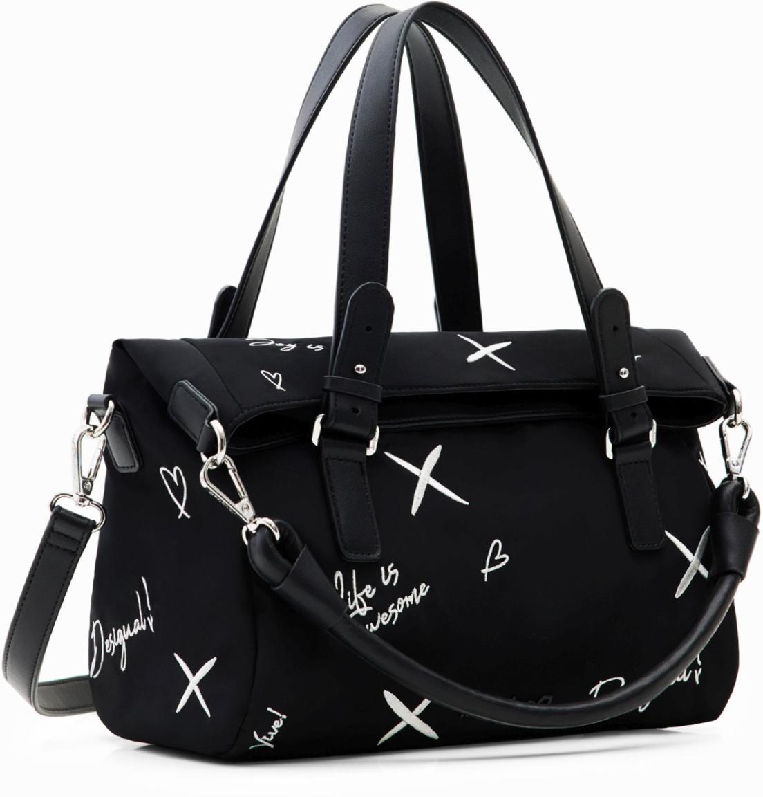 Eine elegante Damentasche ist die Loverty aus der Serie Ekix von Desigual. Das recycelte Kunststoffgewebe ist Negro (schwarz) und mit Statements in weiß bestickt. Der ideale Begleiter, sowohl beim Stadtbummel als auch abends beim Ausgehen.