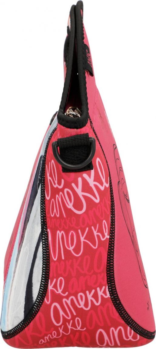 Die Vorderseite dieser Snack Bag aus Neopren ziert deshalb das Portrait einer verträumten Anekke im Stile der Hollywood-Diva, umgeben von wissenschaftlichen Formeln und Ausdrücken.